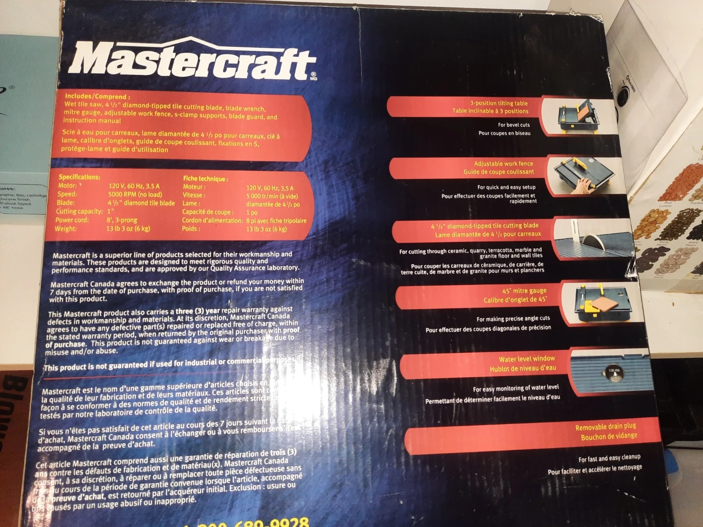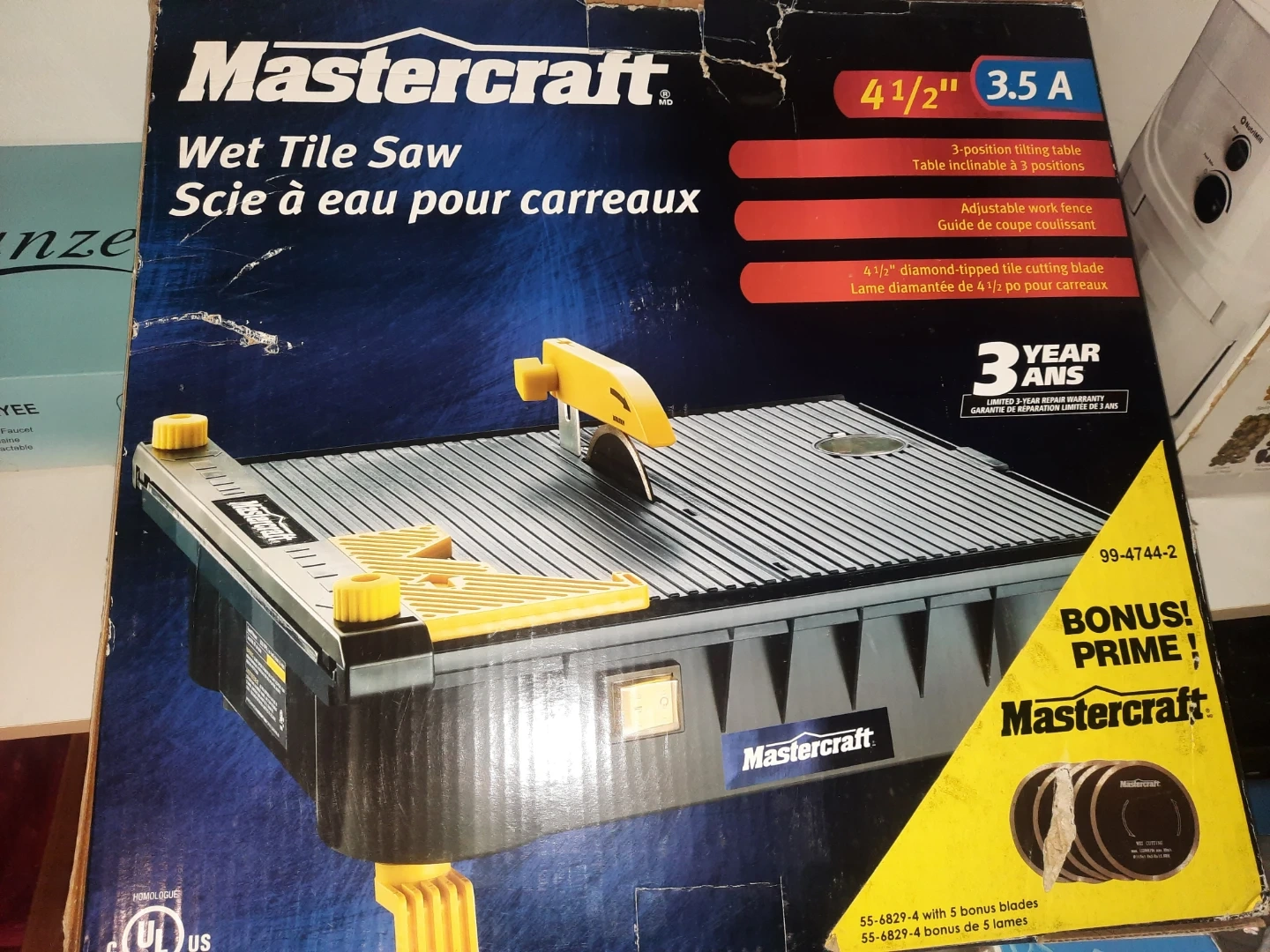 Mastercraft Wet Tile Saw - Brand New with 5 Bonus Blades