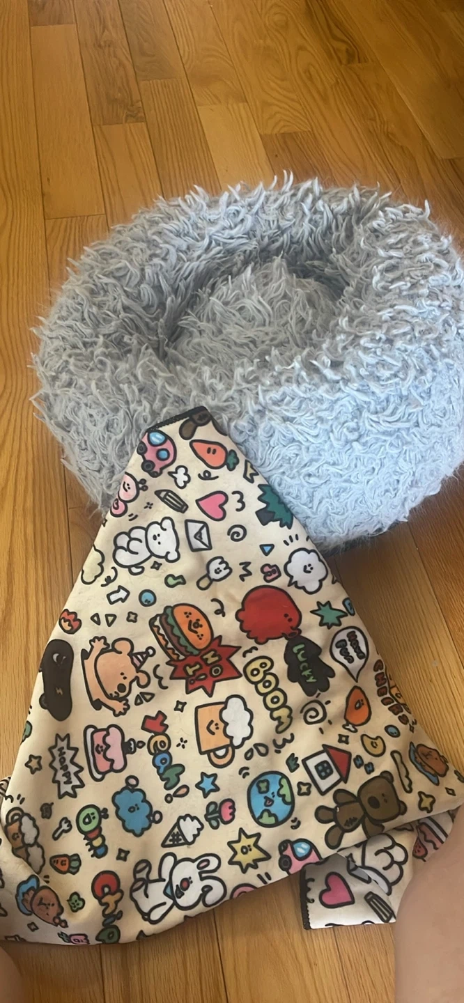 Selling a cozy dog bed that your furry friend will absolutely love! It comes with a cute patterned blanket to keep them extra warm and snuggly. The bed is in great condition and ready for a new home!