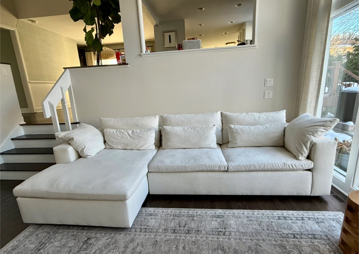 Selling a comfortable sectional sofa. It's in great condition and perfect for lounging! It's a great addition to any living room! Pick up only.