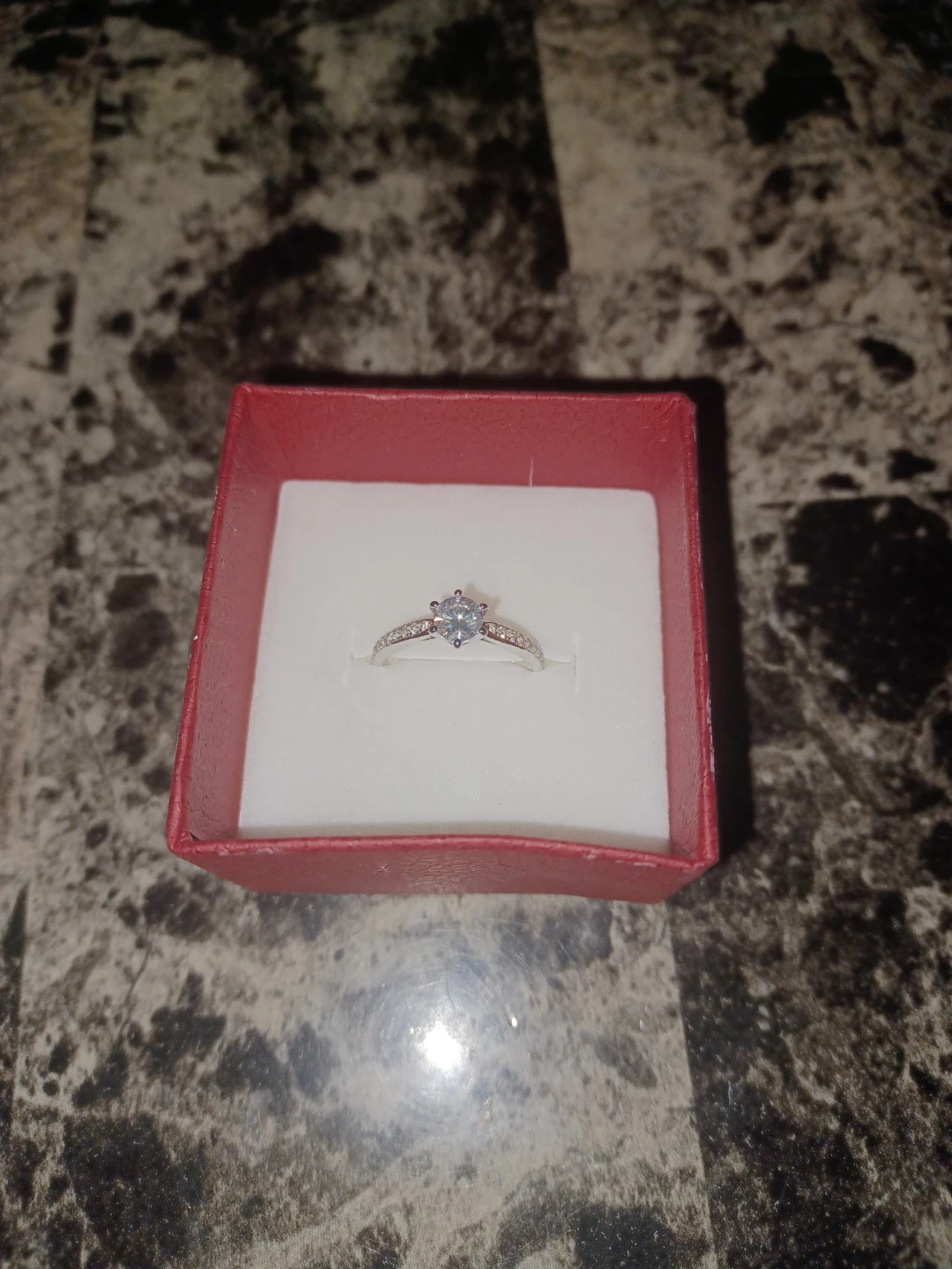 Selling a beautiful diamond ring. It comes with a cute blue pouch for safekeeping. Perfect for a special occasion or everyday wear! It's kinda small
