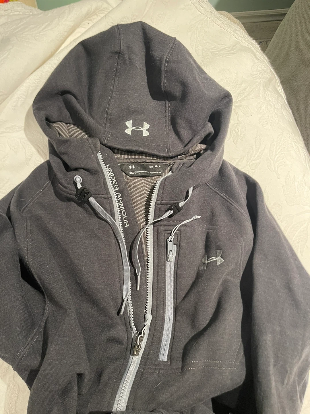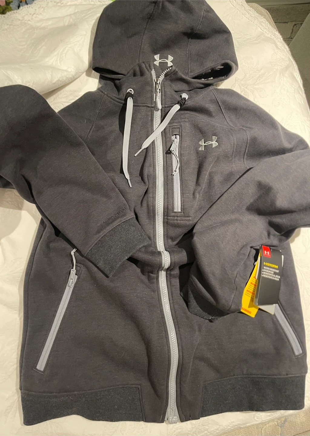 Selling an Under Armour ColdGear Infrared hoodie in size medium. It's in great condition and features a water-resistant Storm finish. Perfect for staying warm during colder weather!