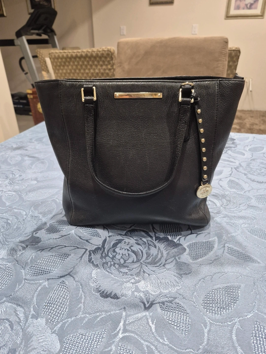 Selling a gently used Brahmin black leather tote bag. It's in great condition and perfect for everyday use! The bag features the Brahmin logo and gold-tone hardware.