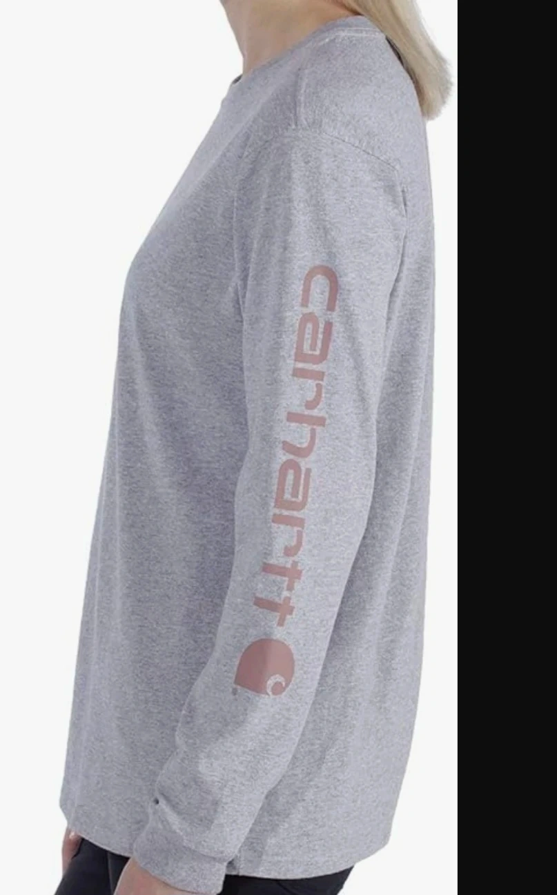 For well over a century, the Carhartt name has stood for quality and dependability on the job. This Brand New women's long-sleeve t-shirt is made of heavyweight cotton jersey and features a Carhartt logo on the sleeve