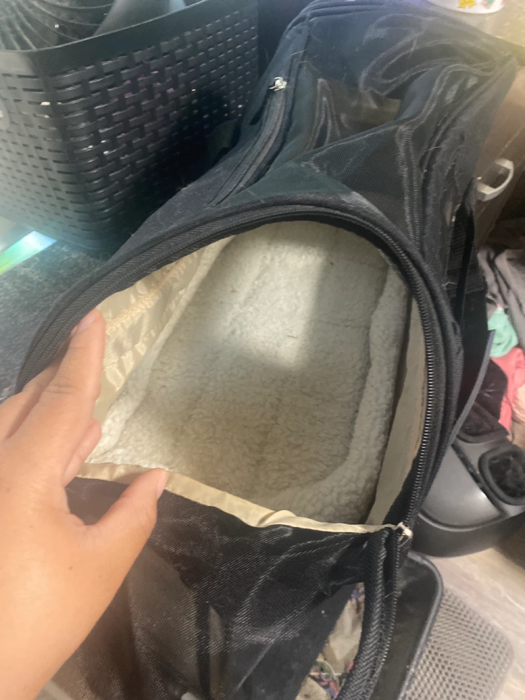 Selling a black pet carrier bag. It looks like it's in good condition and ready for your furry friend's adventures