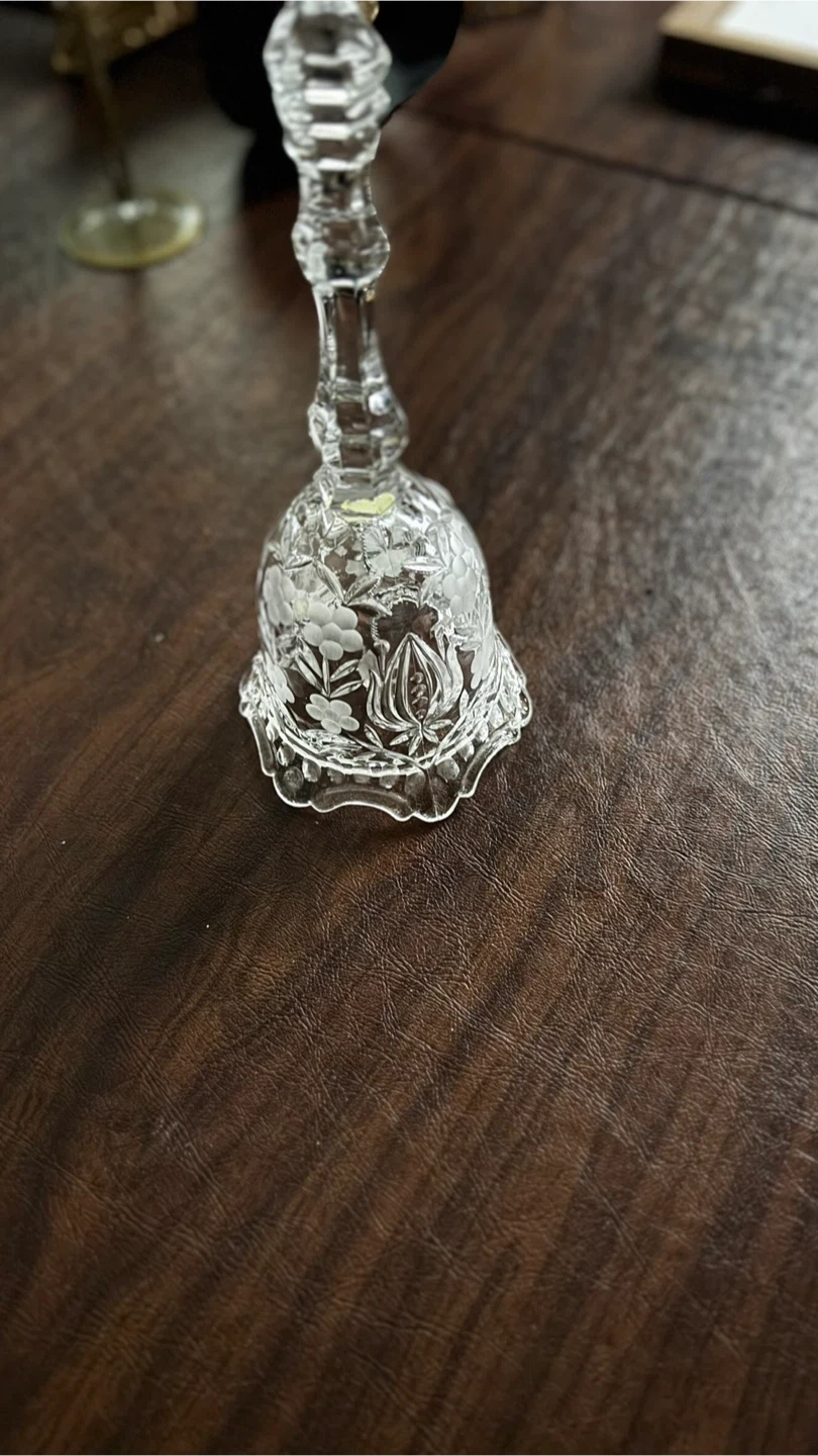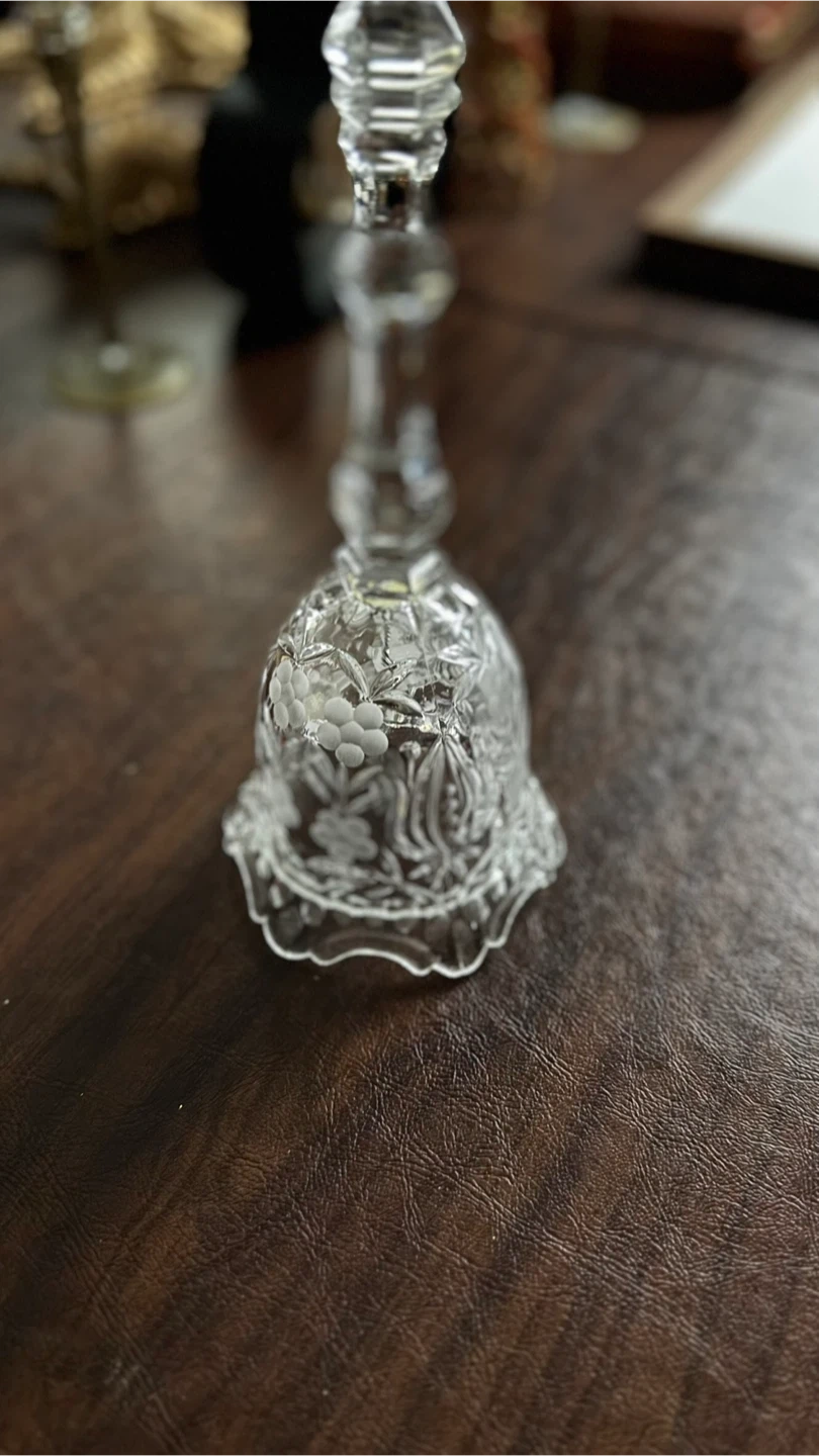 Selling a beautiful vintage clear glass bell with a delicate floral design. It's in excellent condition and would make a lovely addition to any home decor. Perfect for collectors or anyone who appreciates vintage glassware