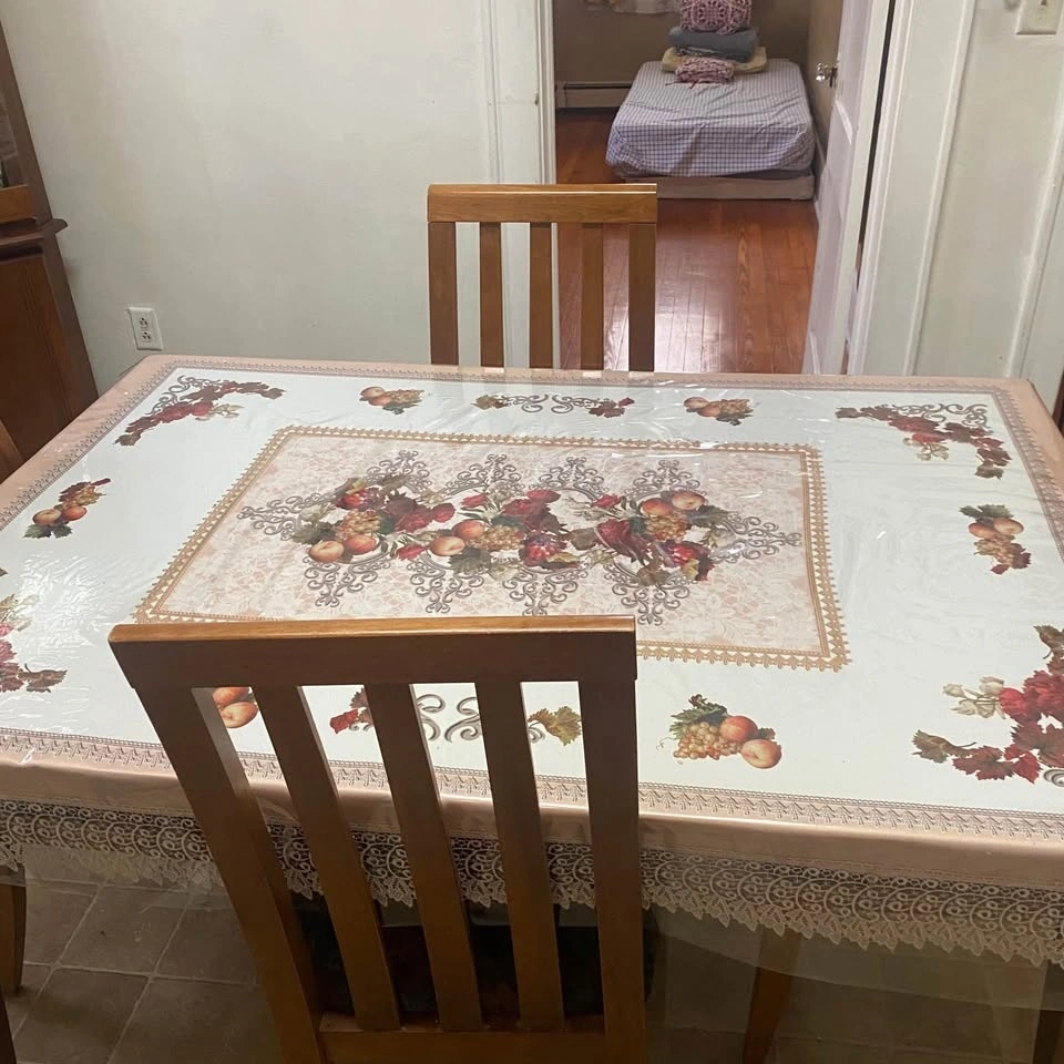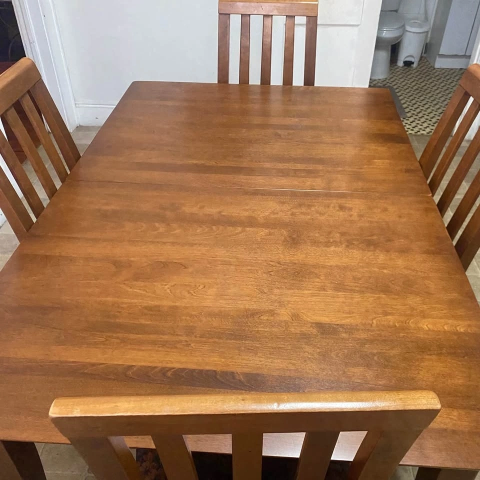 - Comes with 4 matching chairs (set can seat 6 when extended).