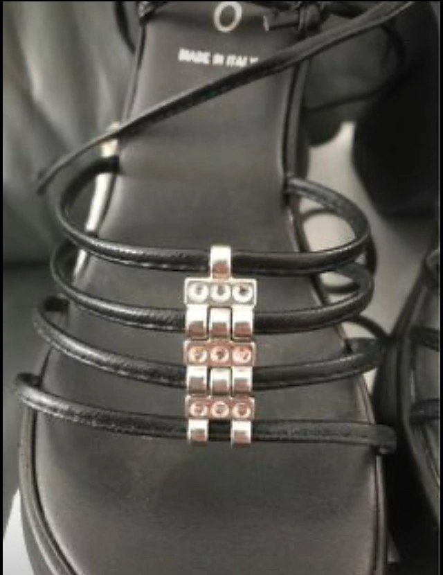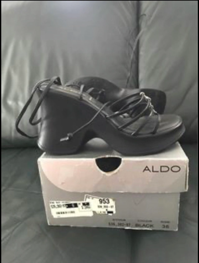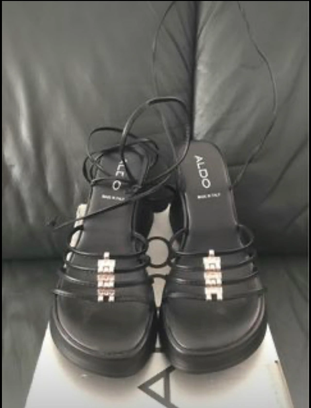 ALDO black leather with crystals with ankle strip wires is excellent and new. It doesn't fit me a shoes size but haven't never used it. Size 36