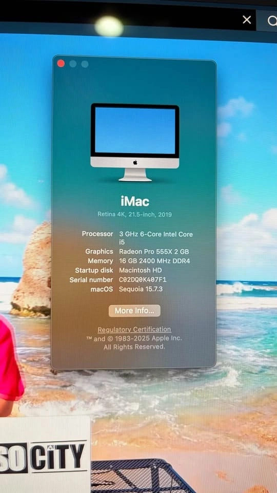 iMac 4K 21.5 2019 - 6-Core i5 / 16GB / 1.25TB Dual SSD