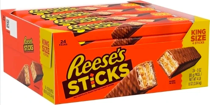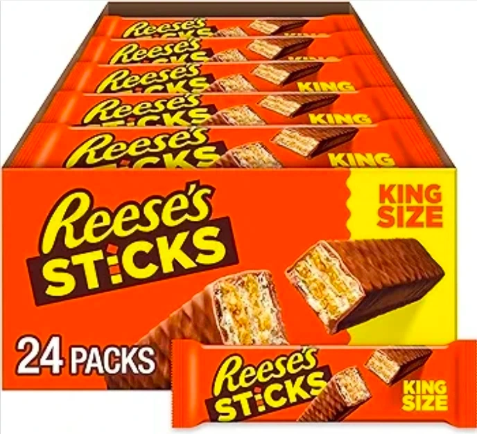 REESE'S STICKS Milk Chocolate Peanut Butter Wafer King Size, Candy Packs, 3 oz (24 Count)