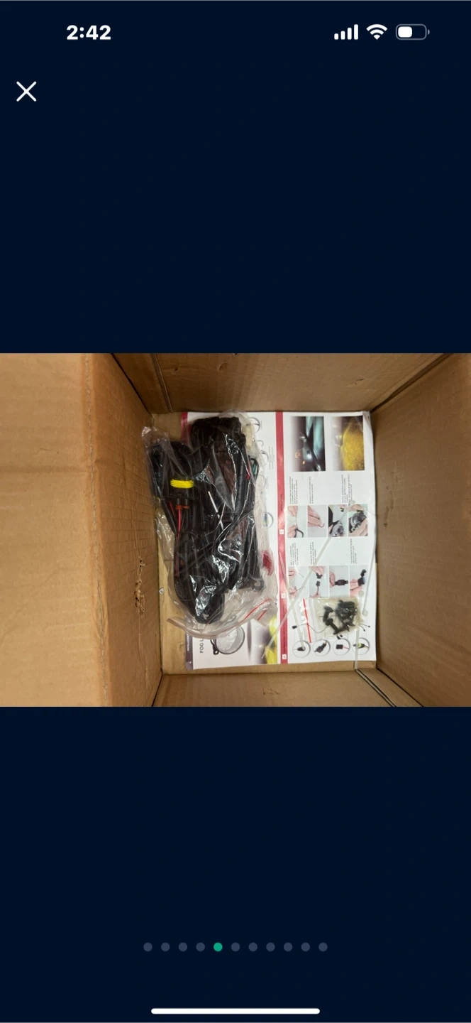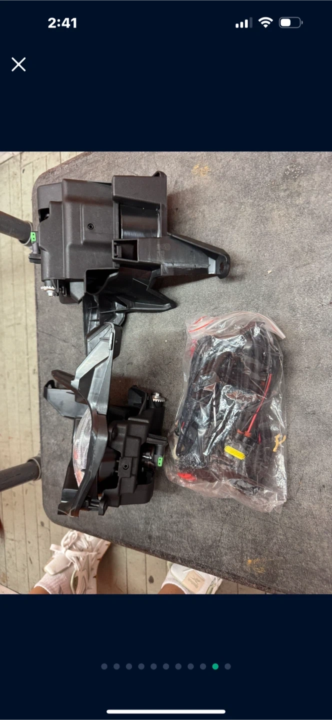 Selling a set of car fog lights. They appear to be in good condition and come with all the necessary components and wiring. The lights are black and include instructions. Toyota rax4 2014,2015