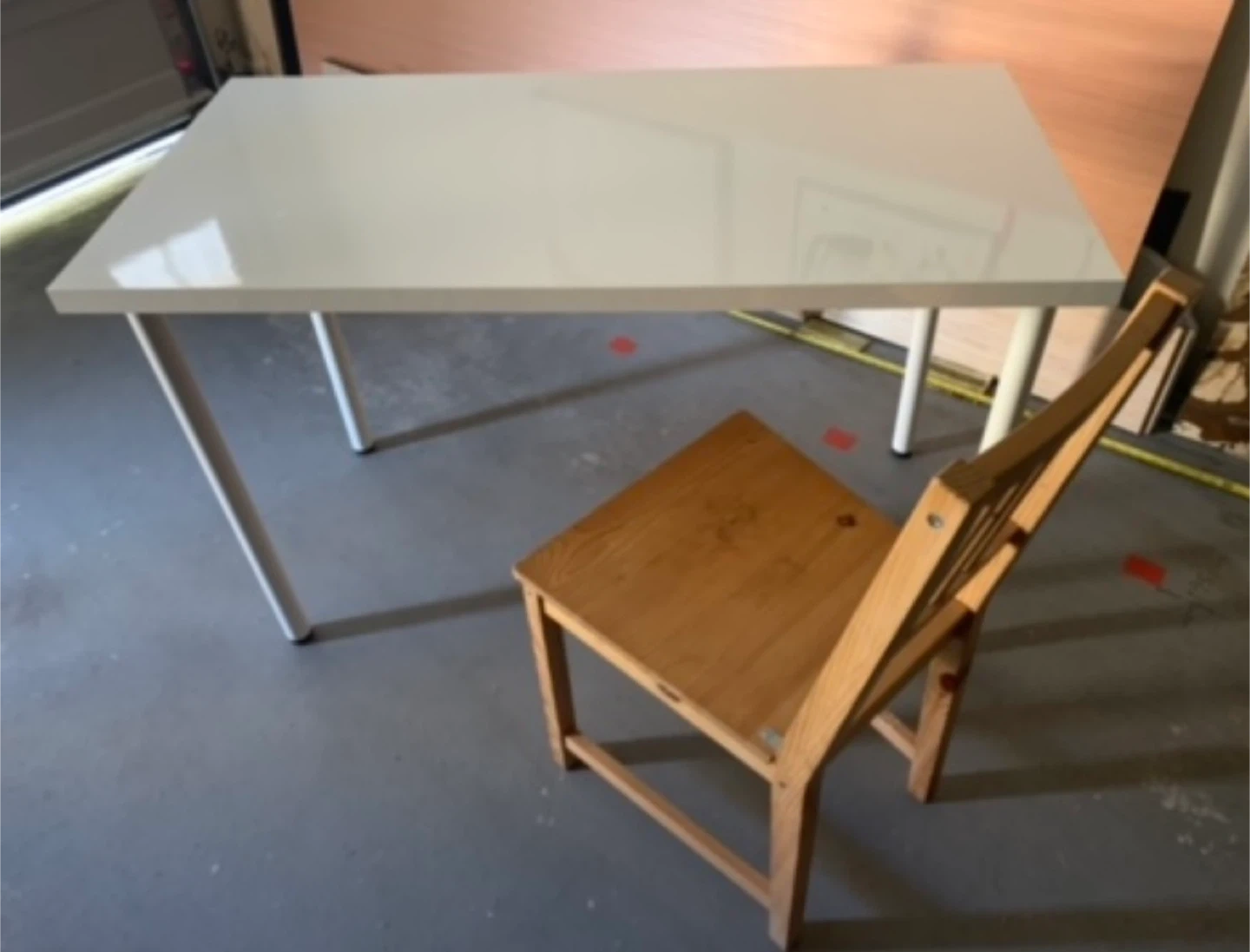 Selling a simple white desk $55.size 140*60 cm, 74 cm height,a wooden chair $15. Perfect for a home office or study space! Both are in good condition and ready for a new home.