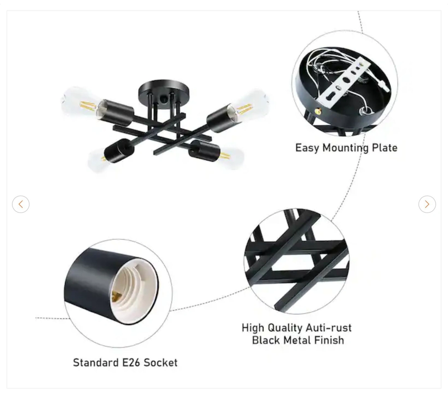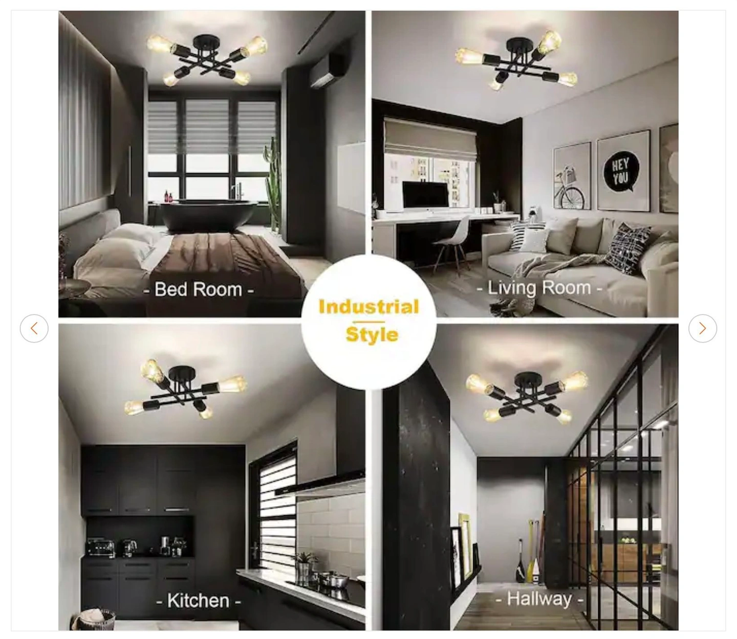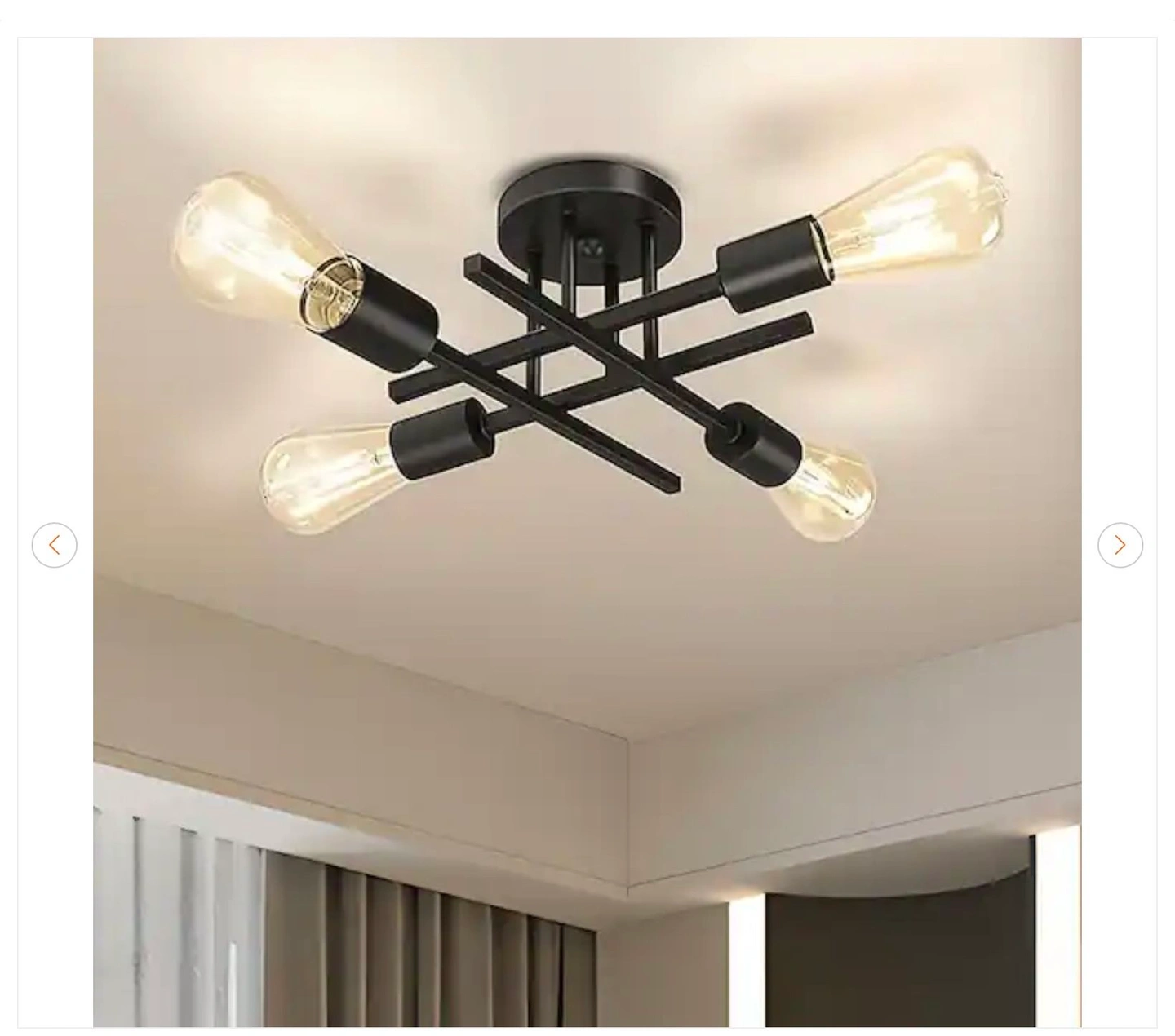 16 In. Black Farmhouse Semi-Flush Mount Ceiling Light Fixtures Modern Sputnik Chandelier for