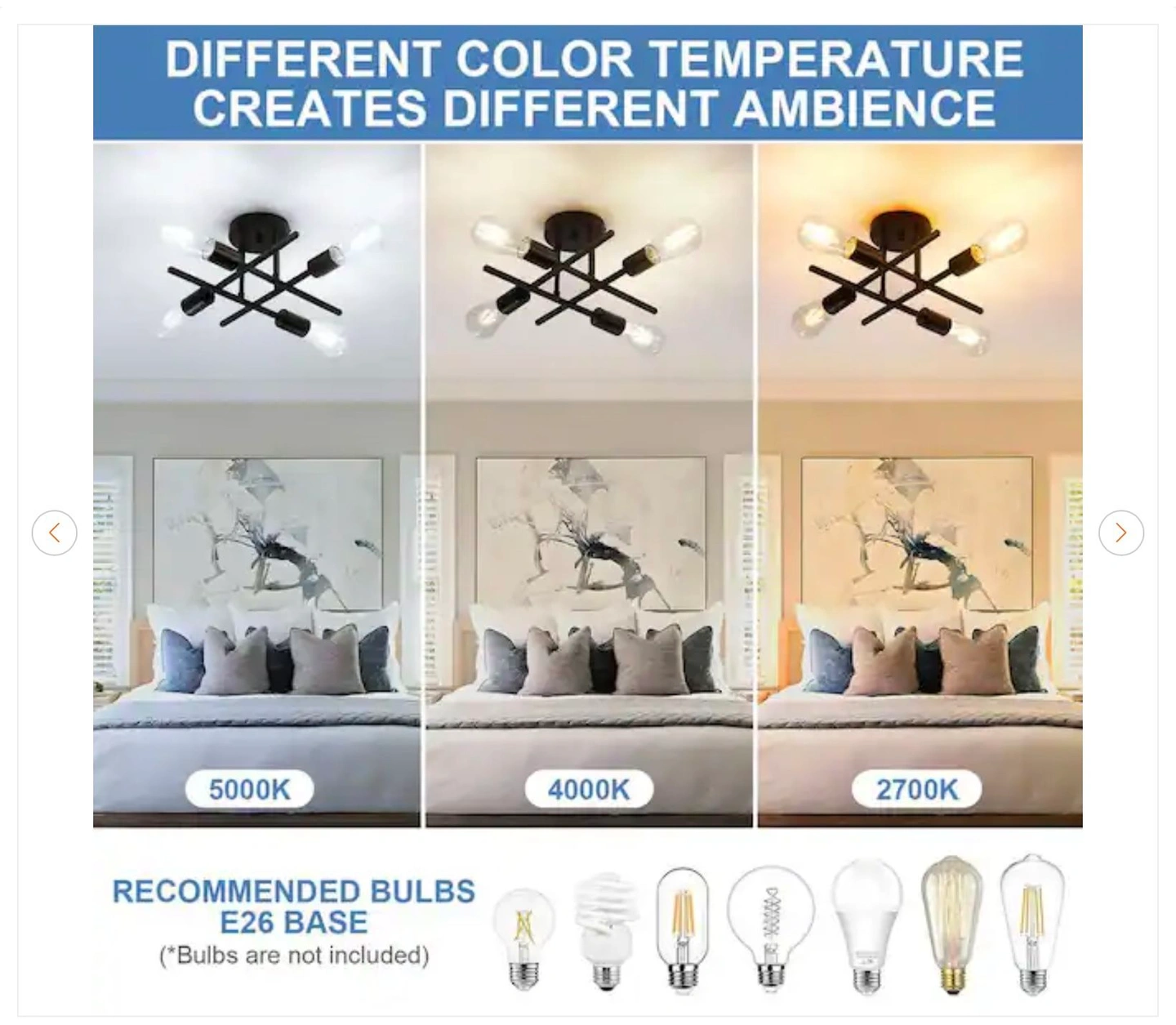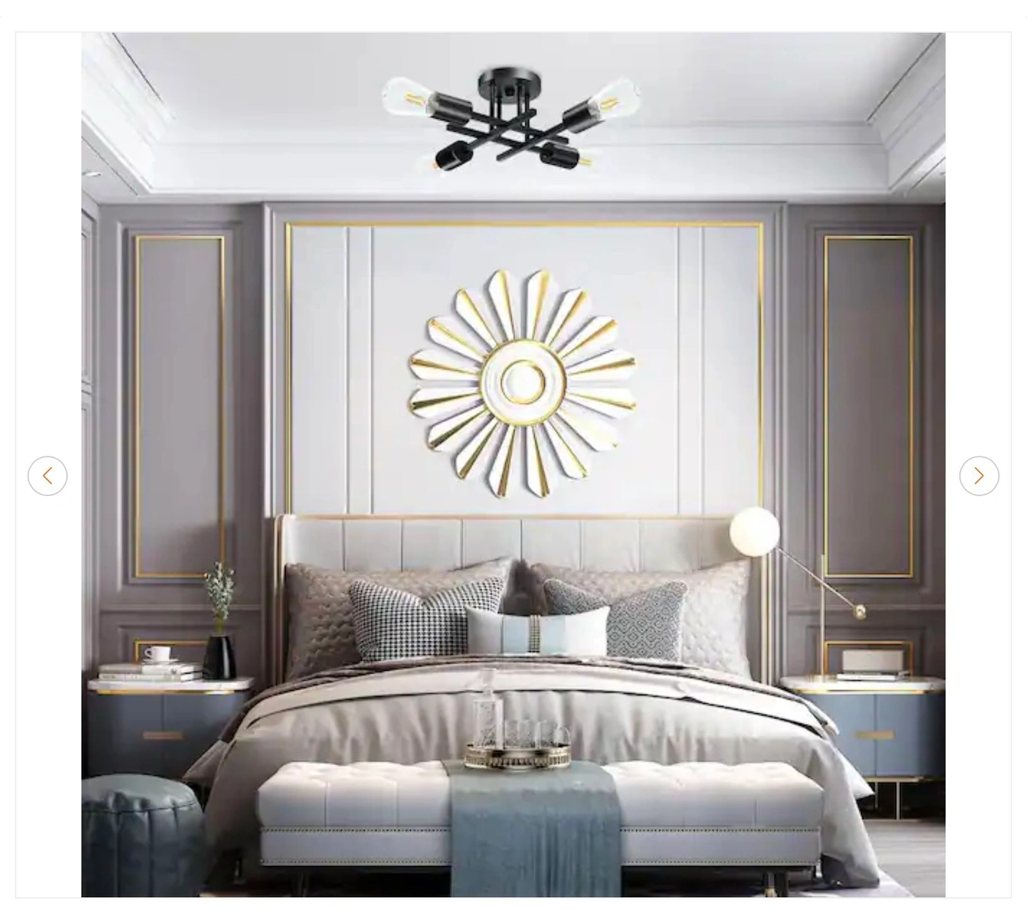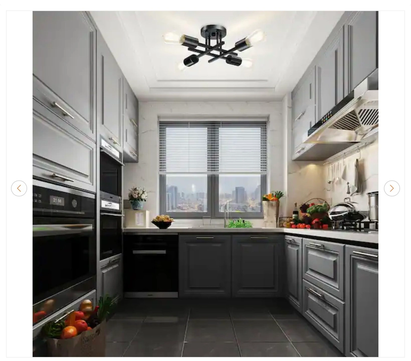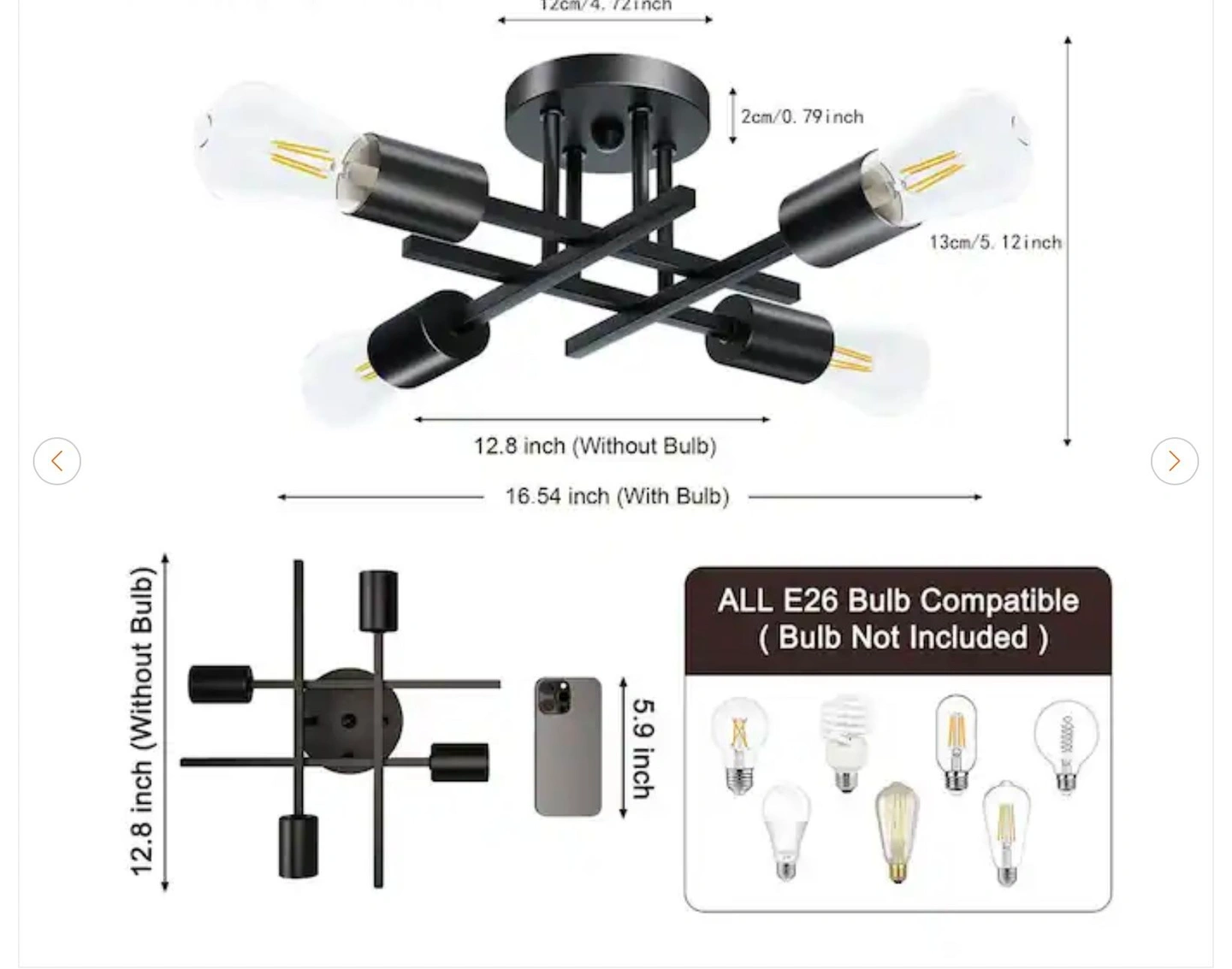 16 In. Black Farmhouse Semi-Flush Mount Ceiling Light Fixtures Modern Sputnik Chandelier for