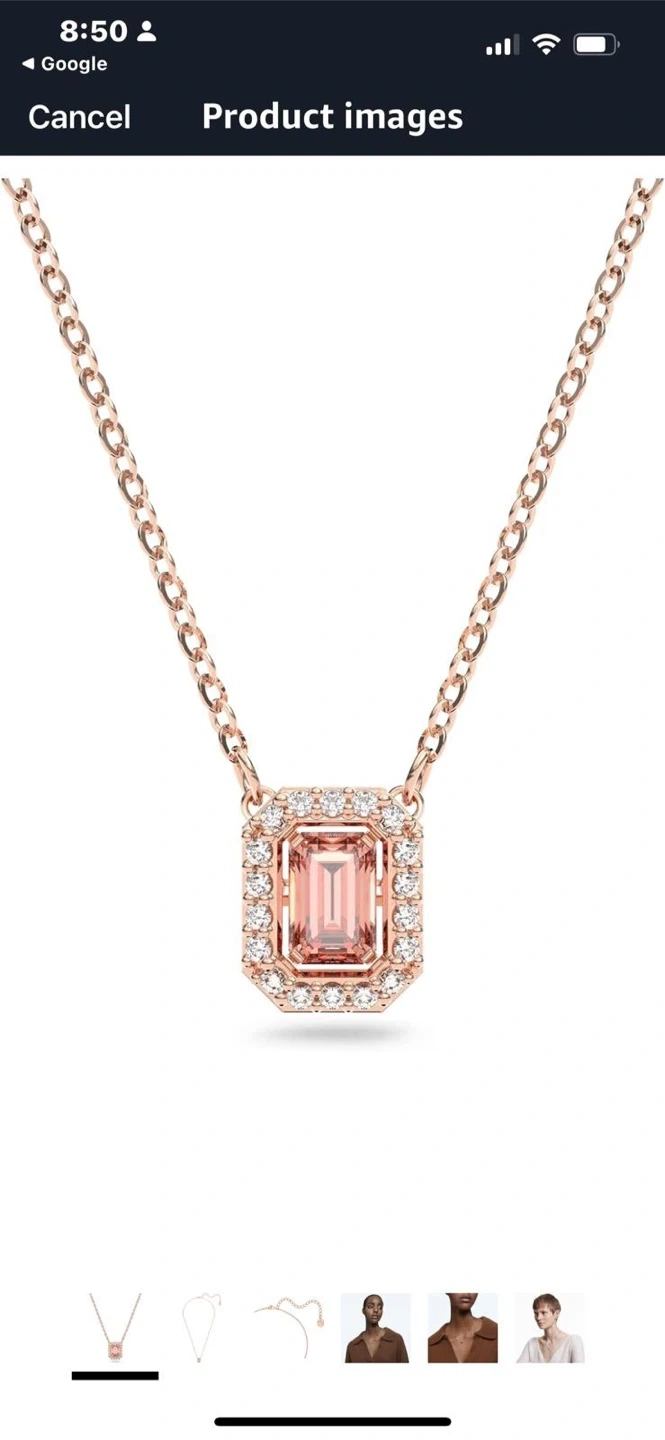This Swarovski Millenia pendant is in excellent condition! The pendant features a pink crystal in a rose gold tone plated setting. It's a beautiful piece that would make a great addition to any jewelry collection