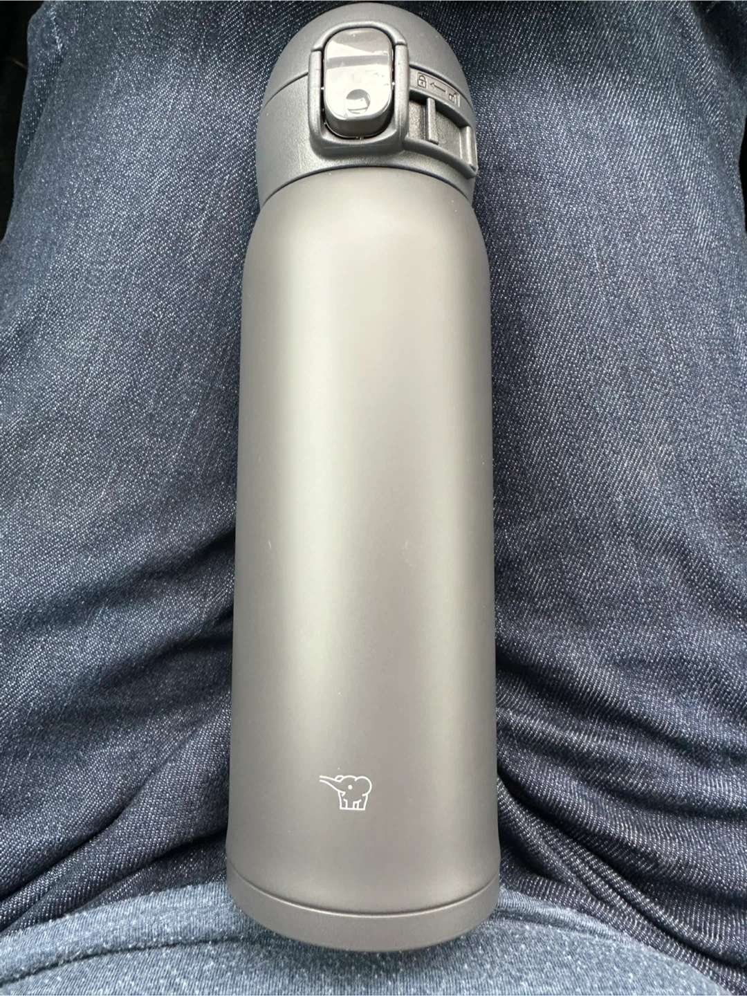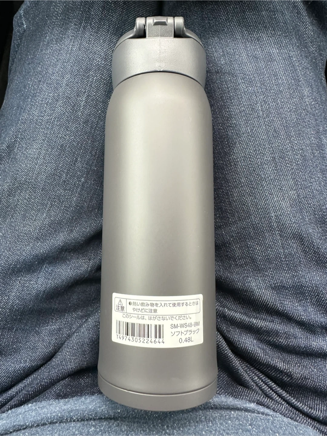 This is a Zojirushi SM-WS48-BM stainless steel tumbler. It holds 0.48 liters and comes in a soft black color. The tumbler features a flip-top lid for easy drinking.
