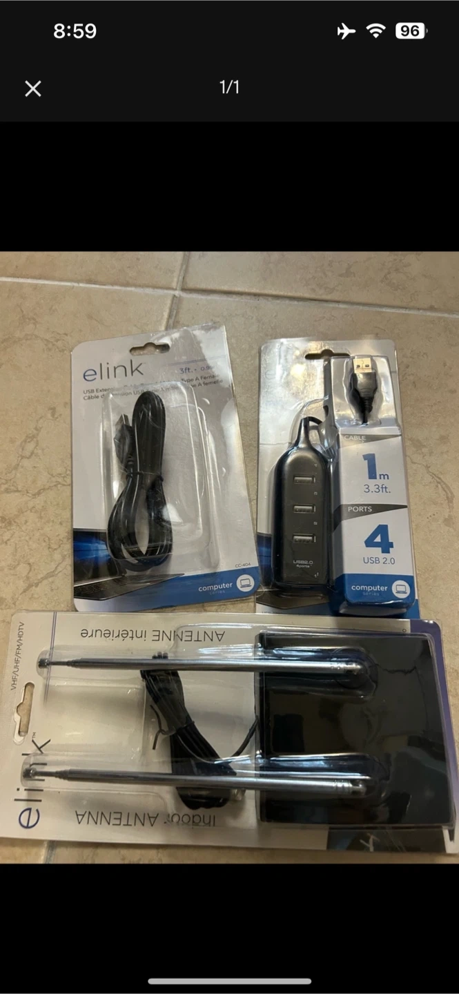 Selling new elink items, still in their original packaging! You'll get a USB extension cable, a 4-port USB 2.0 hub, and an indoor antenna. Perfect for your computer setup