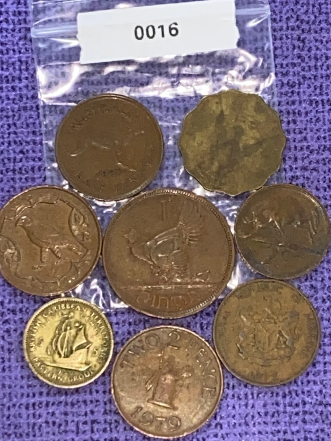 Selling a collection of vintage world coins, including: - An Australian Half Penny from 1950 - A Two Pence coin from 1979 - Coins from the Republic of Nigeria and the British Caribbean Eastern Group from 1956 - And more!