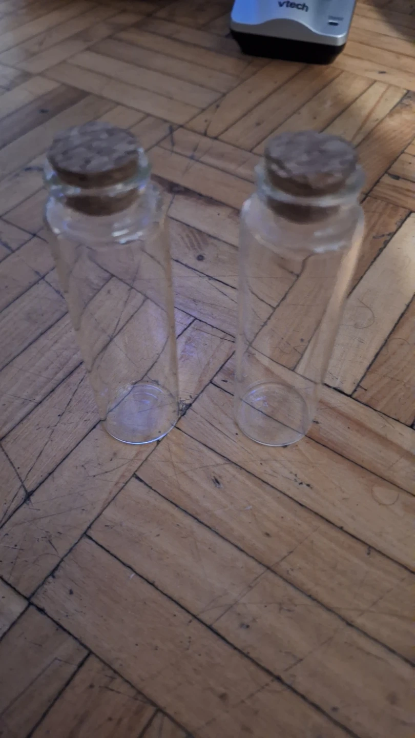 Selling two small glass bottles, each with a cork stopper. They're in great shape and perfect for storing small items or crafting pickup only Lansdowne dupont condos Cash only
