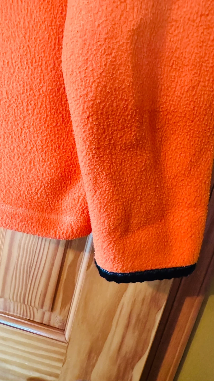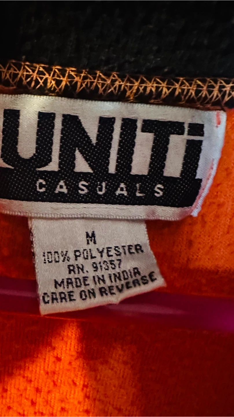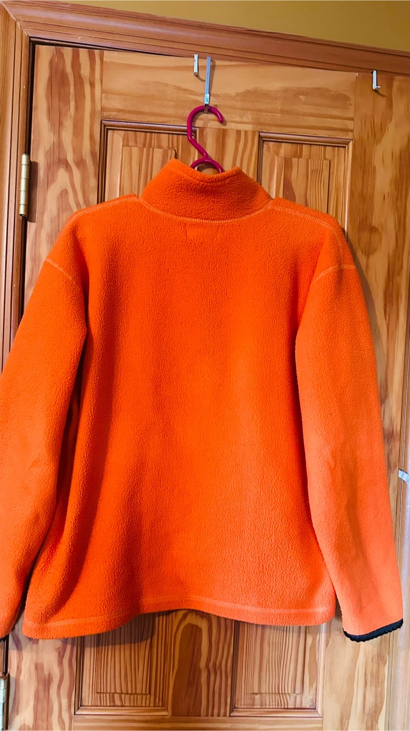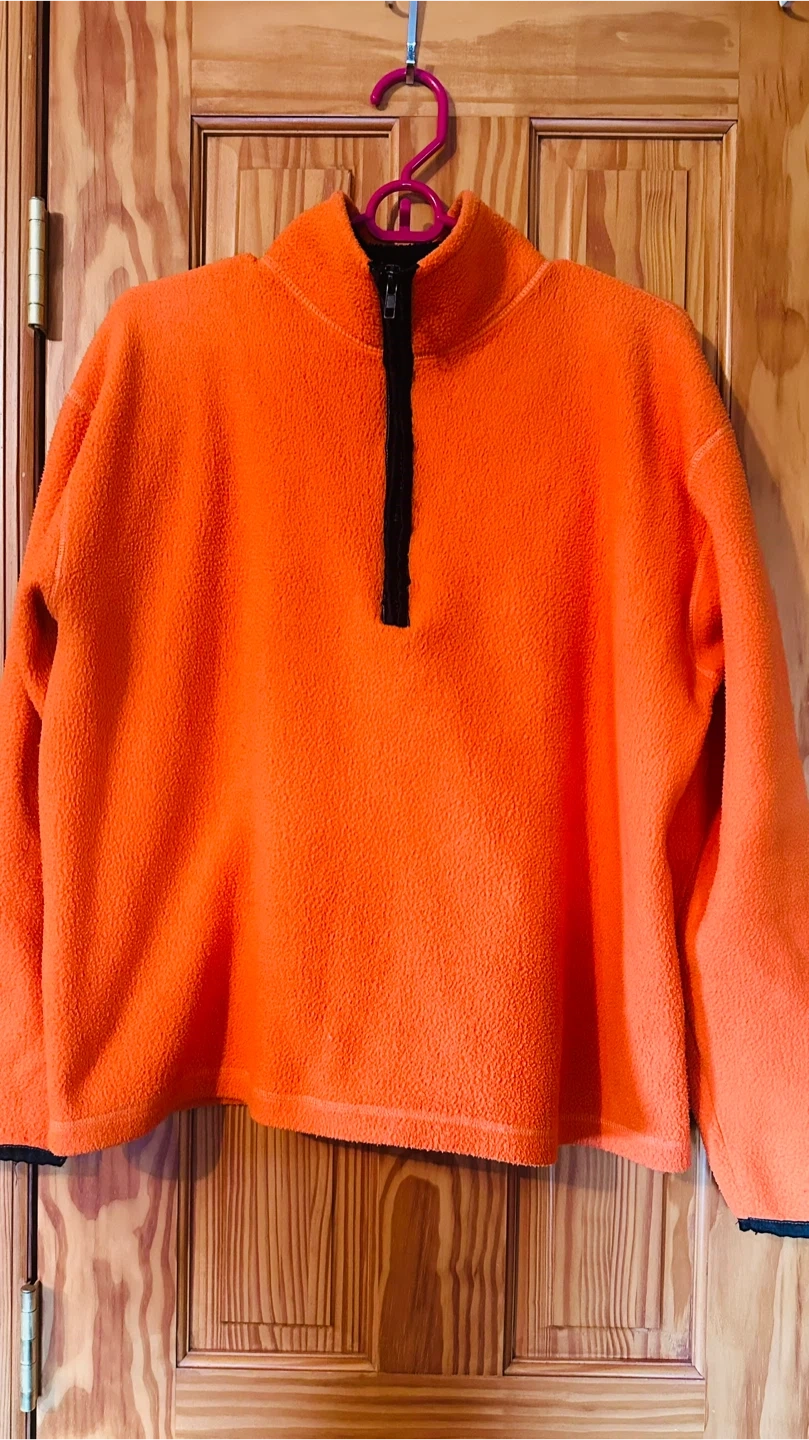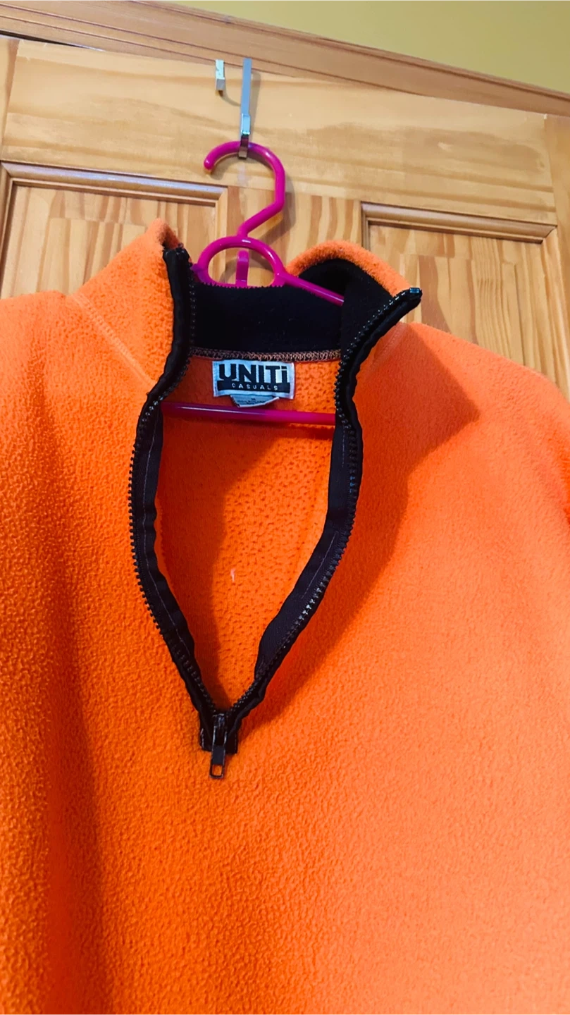 Cozy up in this vibrant orange fleece pullover from UNITI Casuals! This size medium pullover is made from 100% polyester, making it super soft and warm. Perfect for layering or wearing on its own on chilly days!