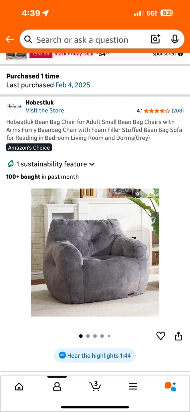 Selling a super comfy Hobestluk bean bag chair! It's the perfect size for reading or relaxing in your living room, bedroom, or dorm. The furry material makes it extra cozy! Only a year old - very good condition. Very comfortable, just a little too low for us.