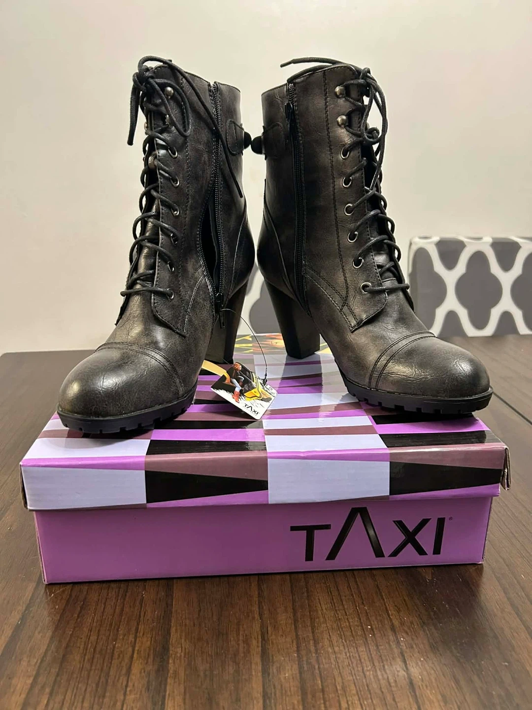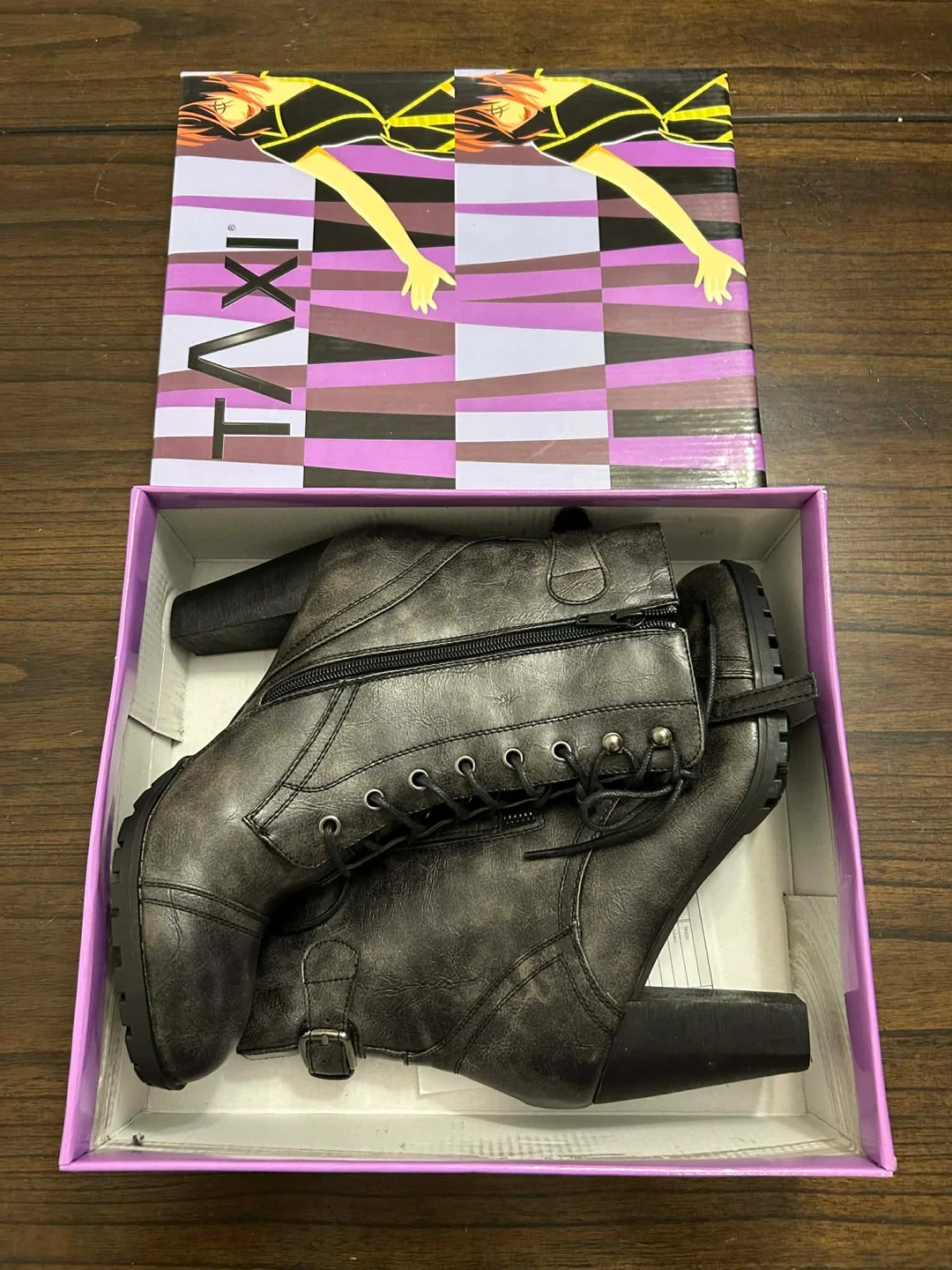Selling a pair of Taxi lace-up heeled boots in a stylish grey colour! They are in very great condition and come with the original box. The boots are a SIZE 40. Perfect for adding a bit of edge to any outfit!
