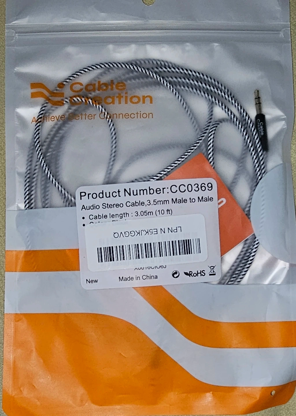 Selling a brand new Cable Creation audio stereo cable. It's a 3.5mm male to male cable with a length of 3.05m (10 ft).