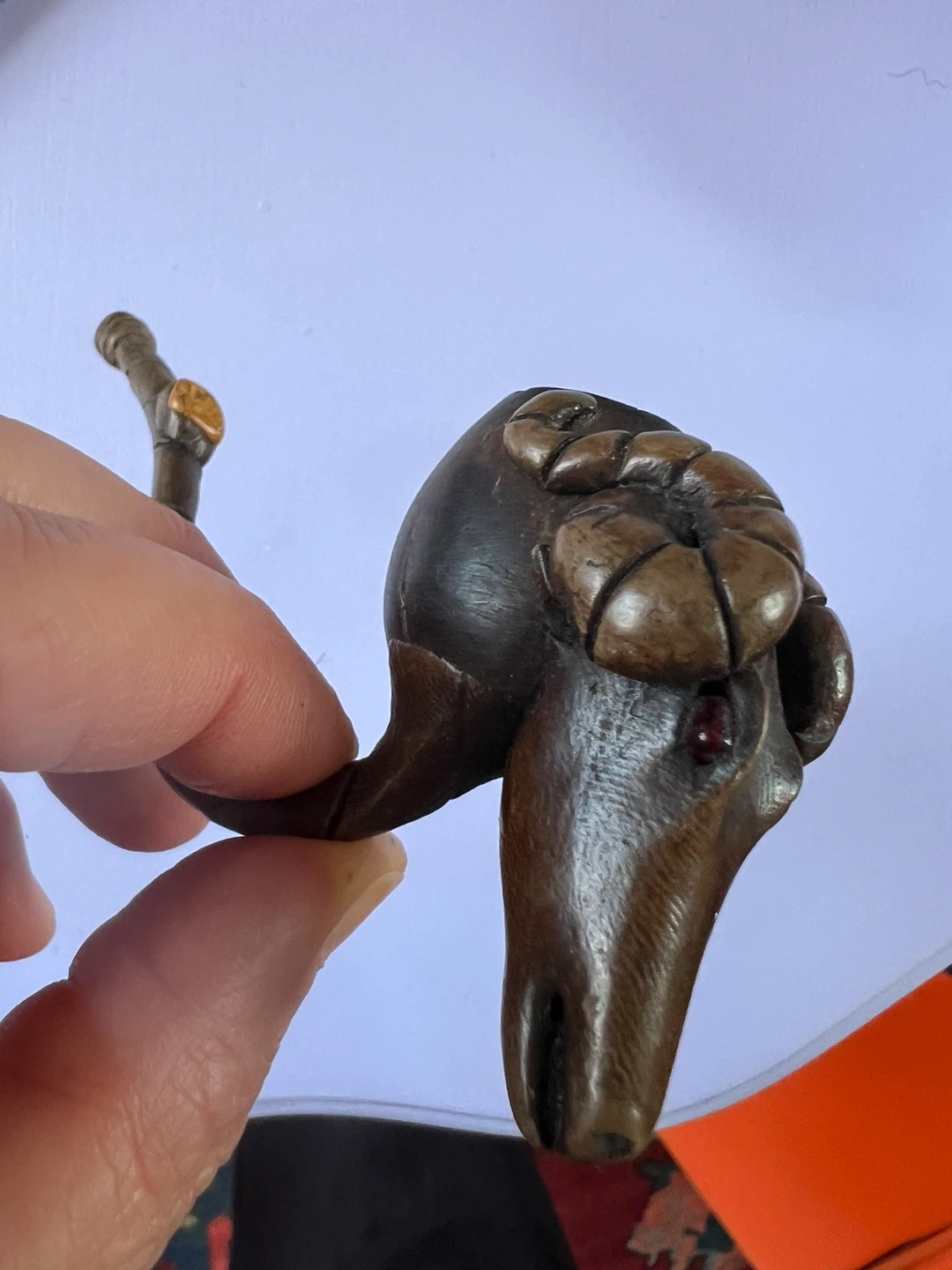 Buy & SellVintage Ram's Head PipeVintage Ram's Head Pipe$47Here's a unique vintage pipe featuring a detailed ram's head design. It appears to be made of wood or a similar material with intricate carvings. It would be a great addition to any collection!WHERE TO MEET42 St-Port Authority Bus TerminalView MapSELLERverifiedAnnAWest New York681 review0 chats·1 favorites·31 viewsSEND CHAT TO SELLERHi AnnA! I’m interested in your listing.Hi AnnA! I’m interested in your listing.Get the Karrot app to chatSign In to chat