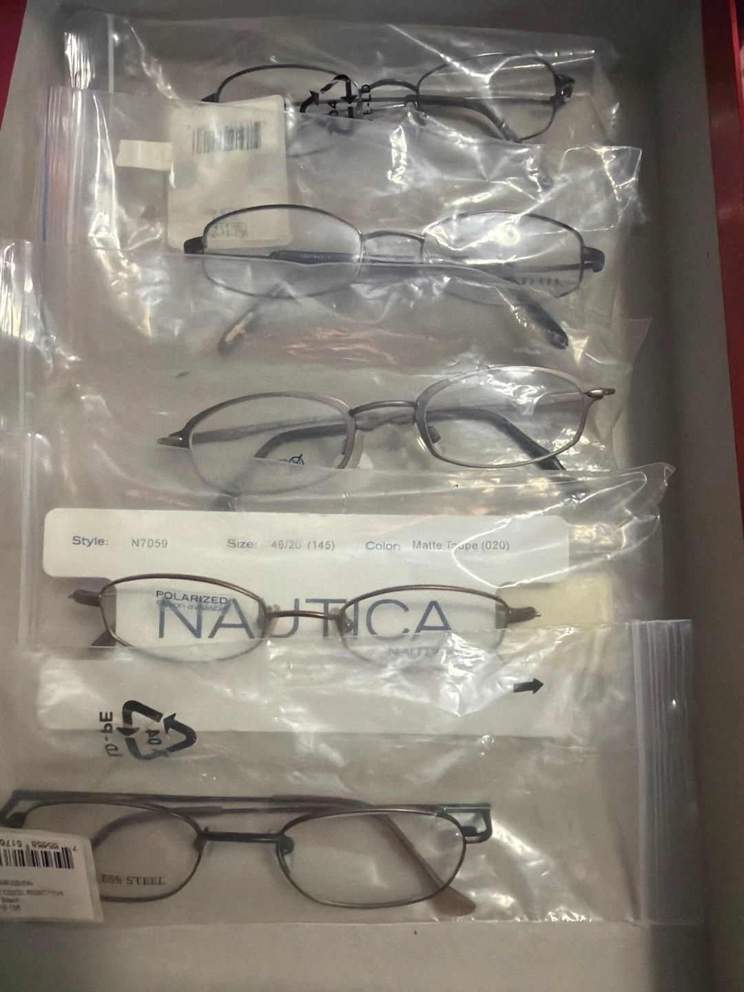Selling a mixed lot of eyeglass frames! There are several brands, including Nautica, Liz Claiborne, Nine West, Jessica McClintock, and more! Styles and sizes vary.All have clear lens-no script-