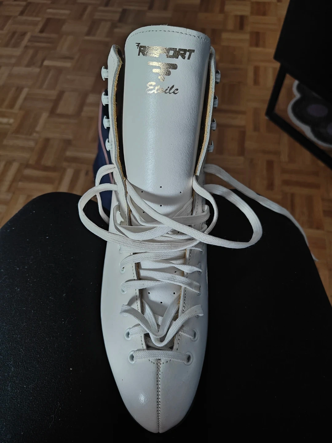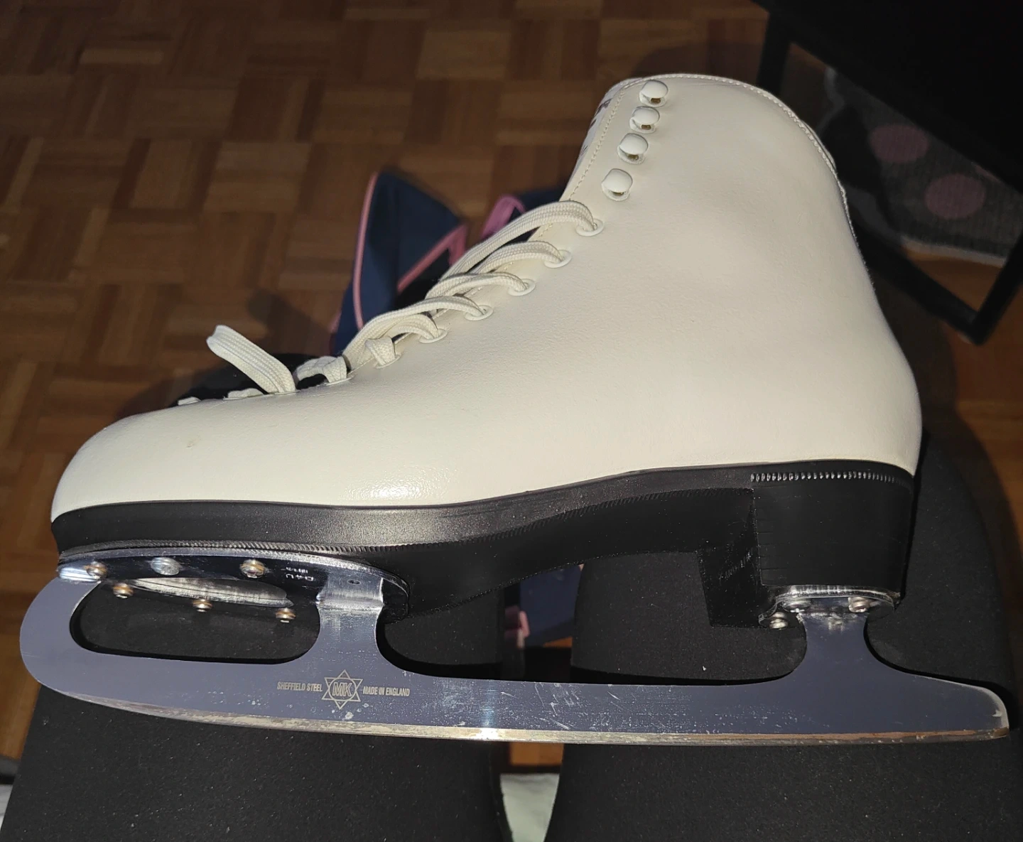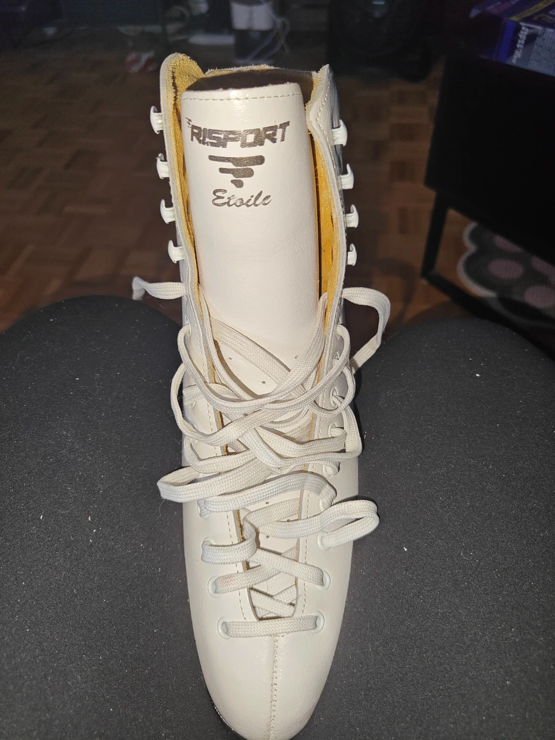 Selling a pair of Risport Etoile ice skates. They are white and in good condition. The size is 44C for the boot the blade says 11&1/3.