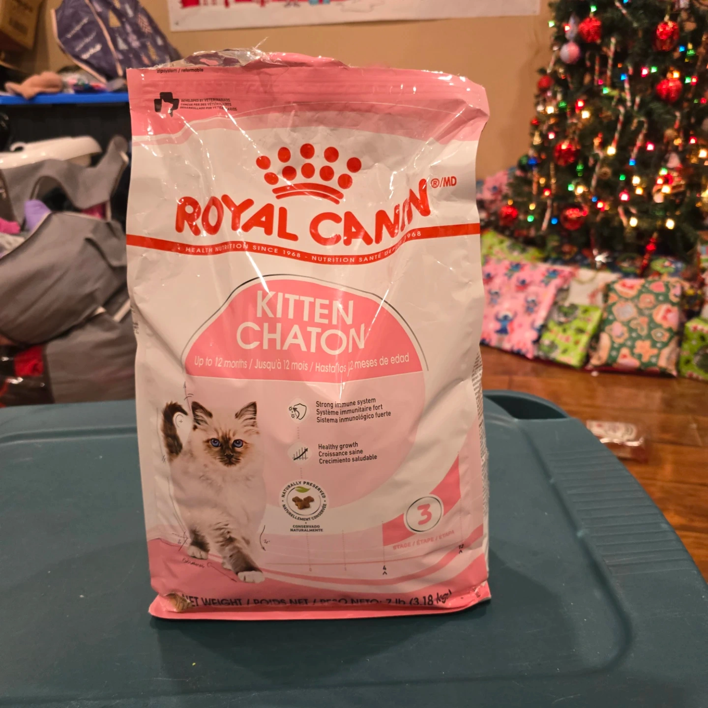 I have a new bag of Royal Canin Kitten Chatton cat food, 7 lb size. It supports the kitten's immune system and promotes healthy growth. Great for kittens up to 12 months old
