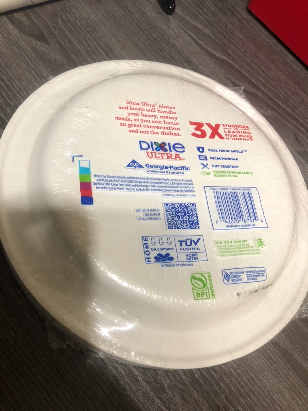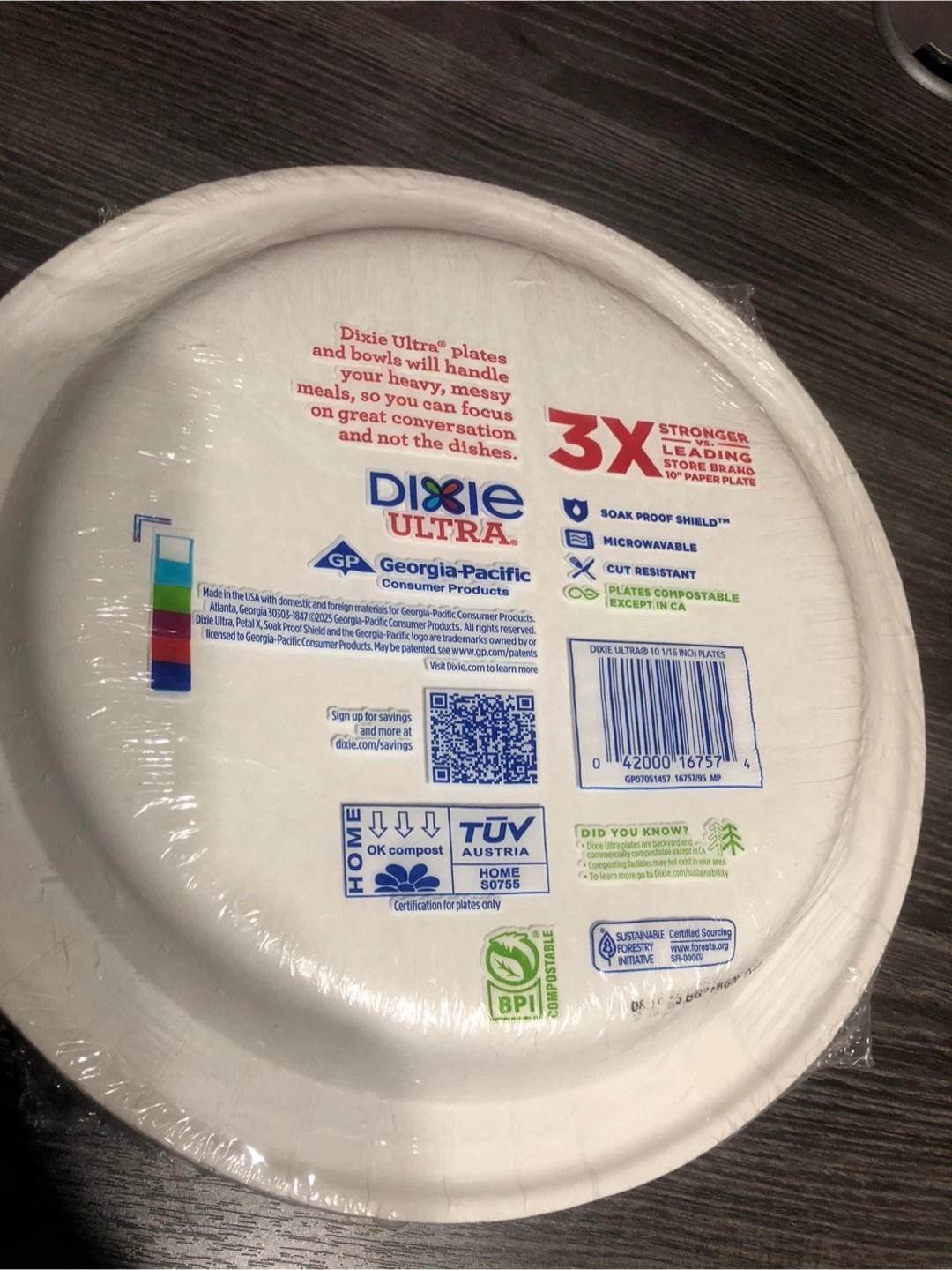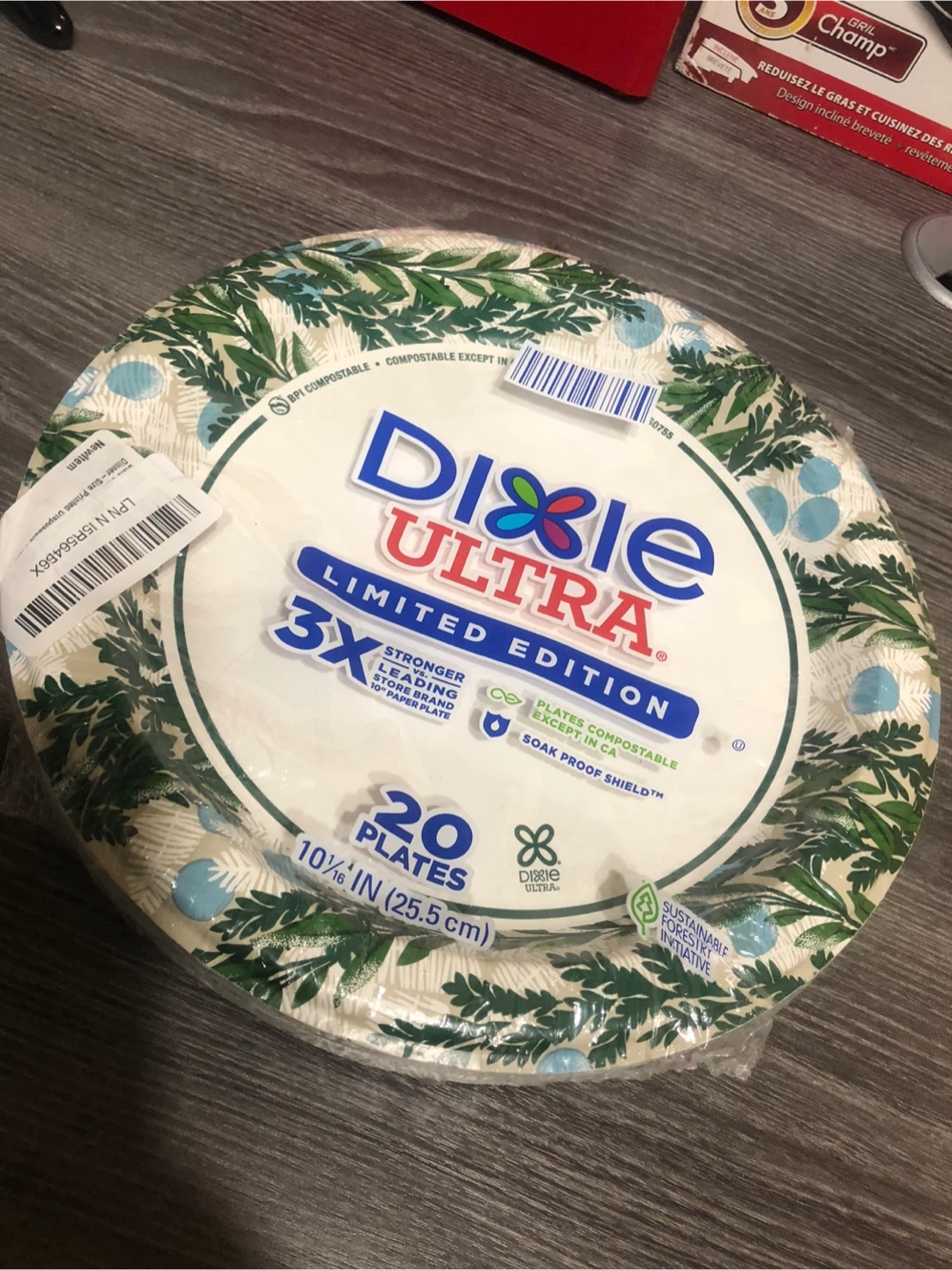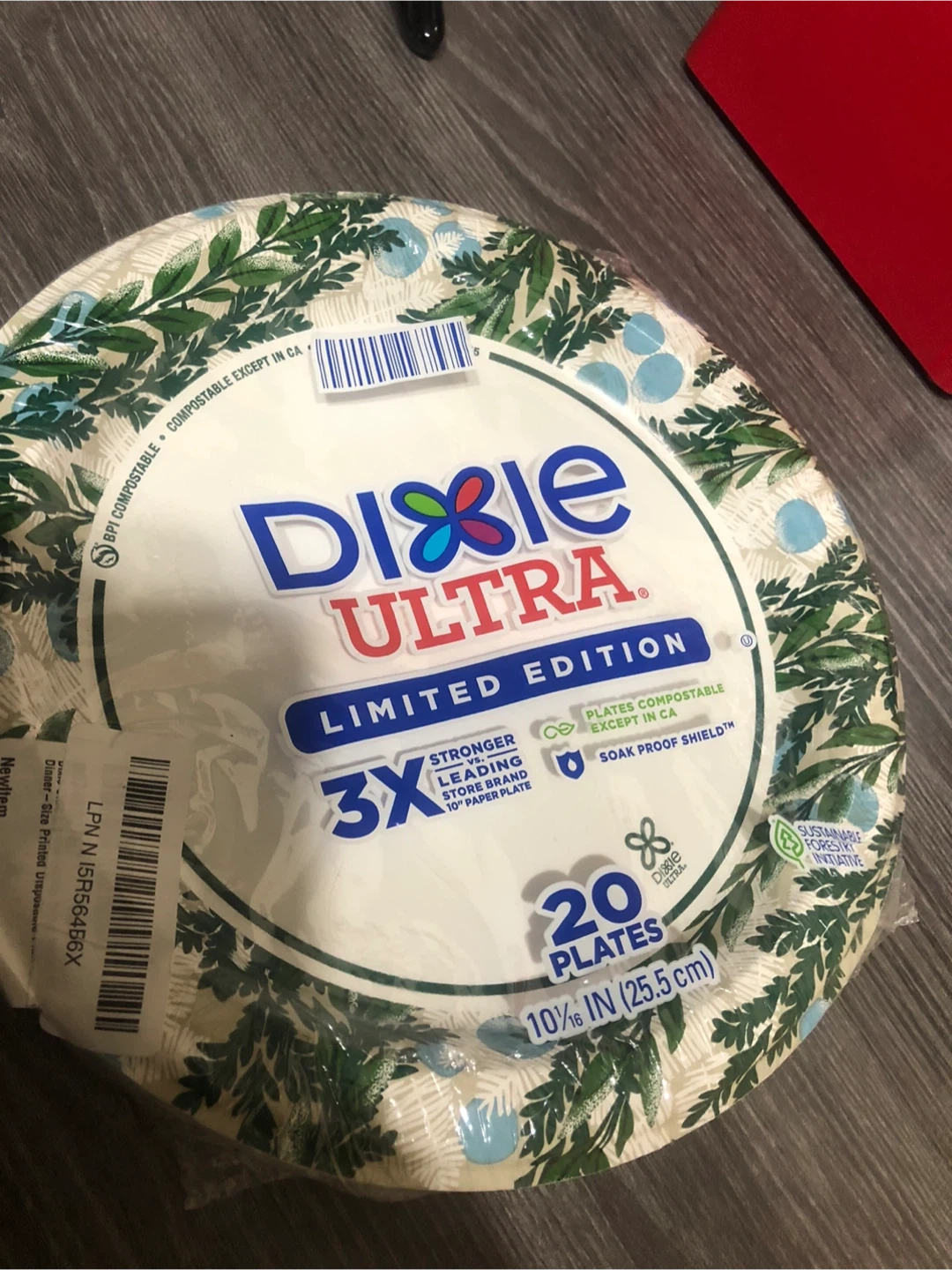 Selling a pack of Dixie Ultra Limited Edition paper plates. This pack contains 20 plates that are 10 1/16 inches (25.5 cm) in diameter. They're 3X stronger than leading store brand 10" paper plates and plates are compostable except in CA. They also have soak proof shield!