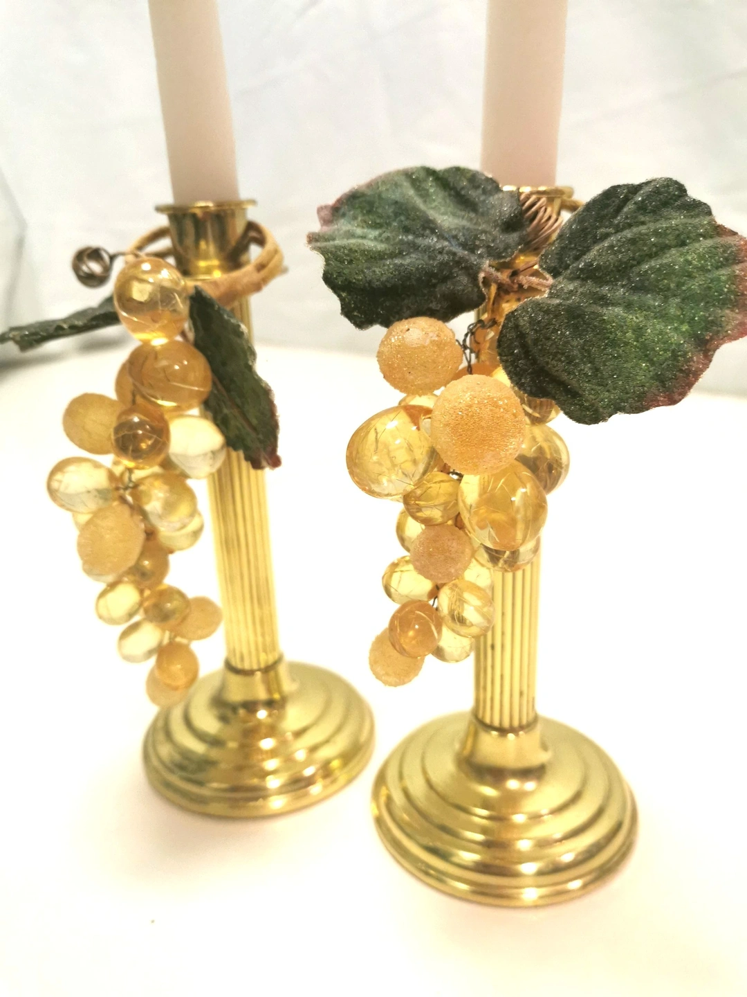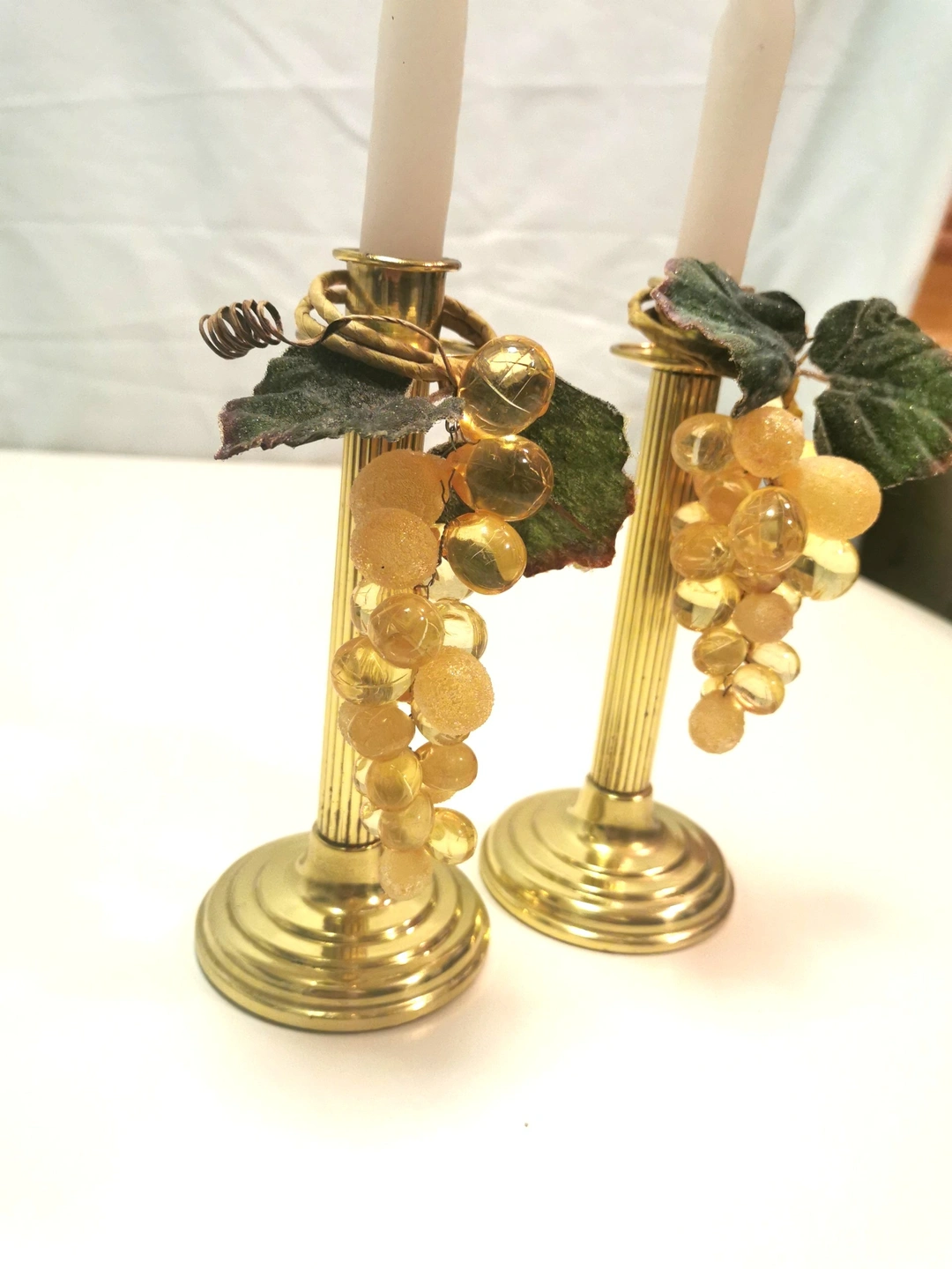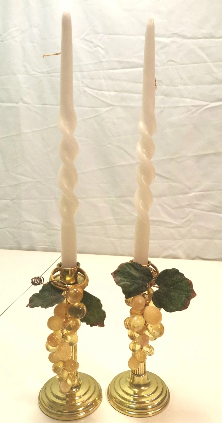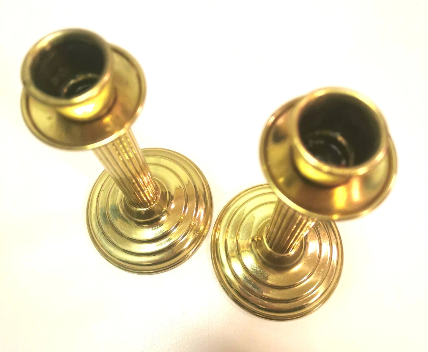 1970s 8" Brass Fluted Column Candlestick Holders Pair Taiwan