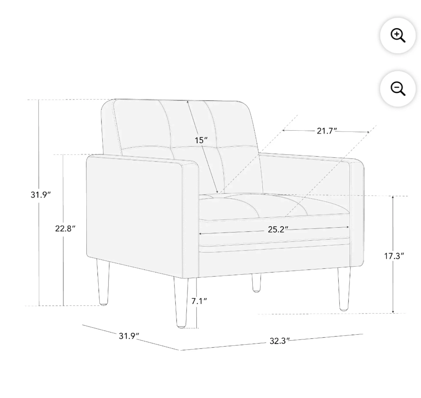 NEW IN BOX (Comes in 2 boxes). CHITA Mid-Century Sofa 32.3''W Faux Leather Single Sofa, Gray