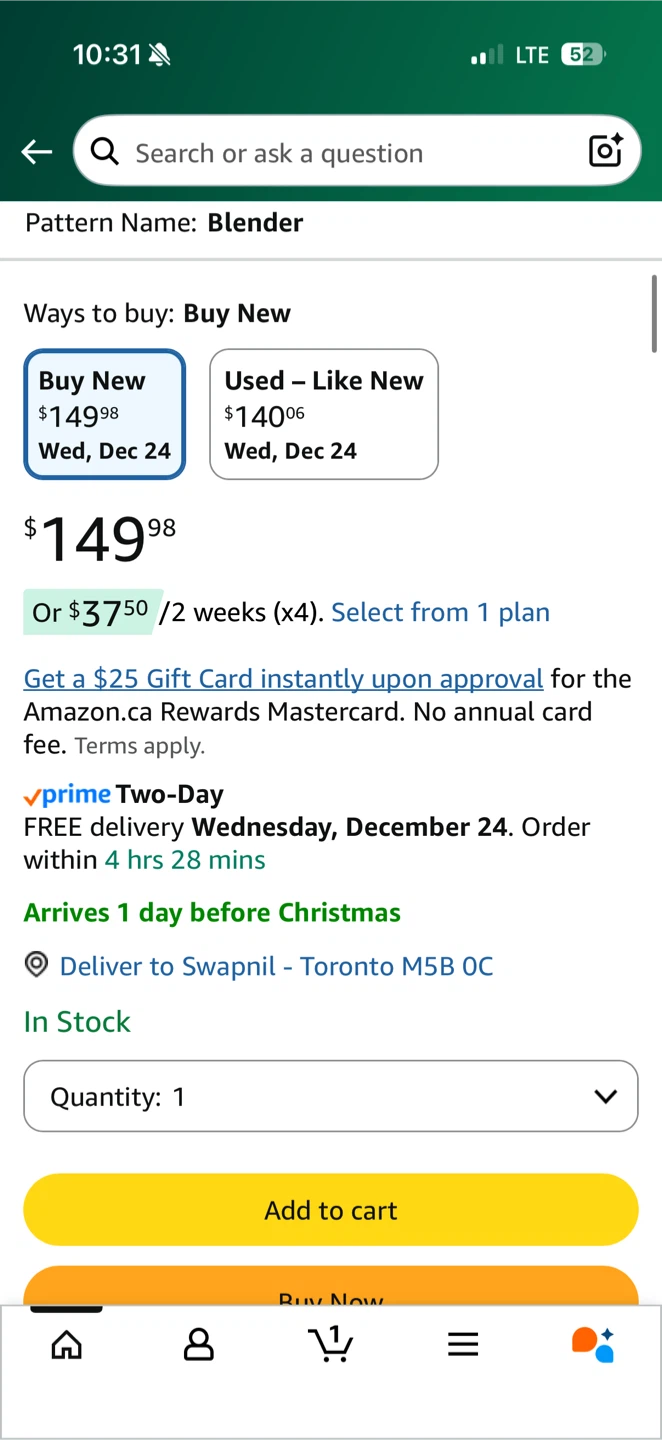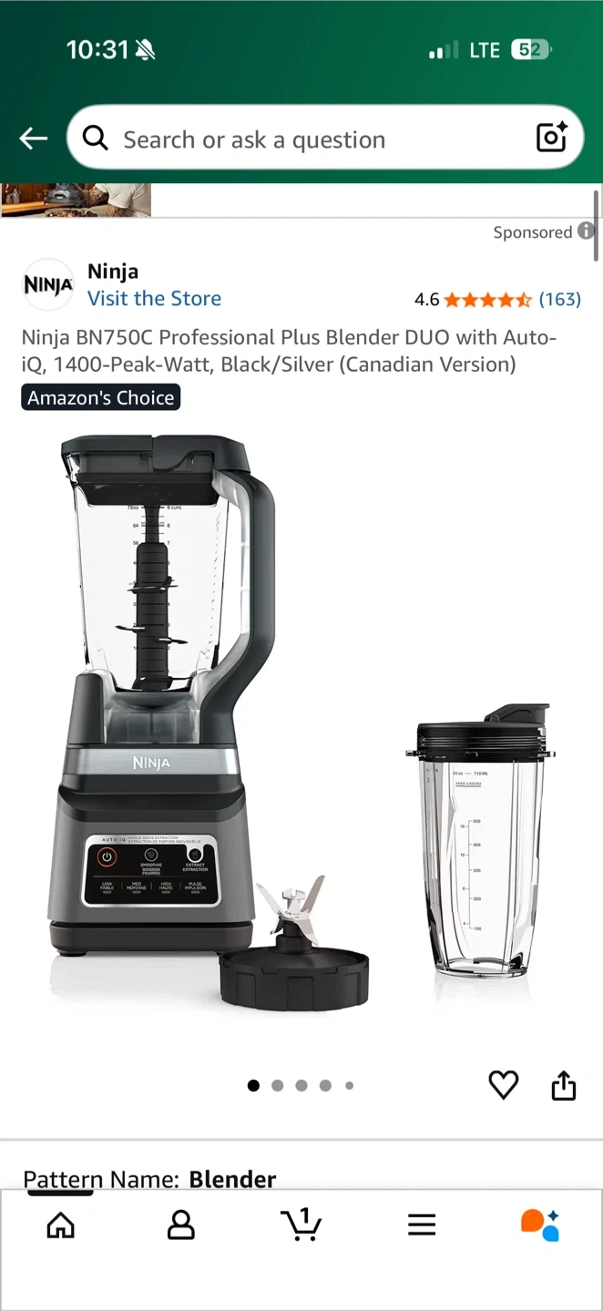 Item Name: Ninja BN750C Professional Plus Blender DUO with Auto‑iQ – 1400‑Peak‑Watt, Black/Silver (Canadian Version)