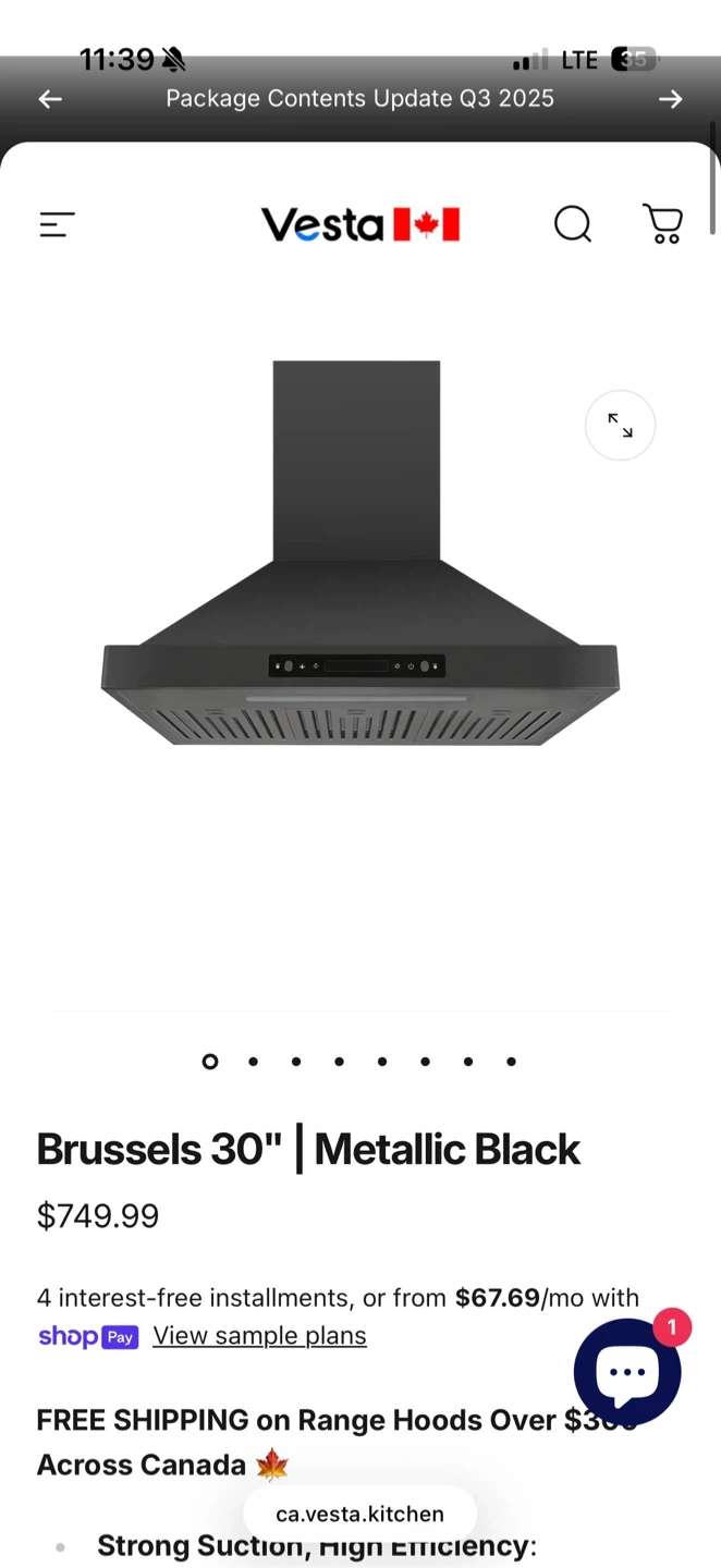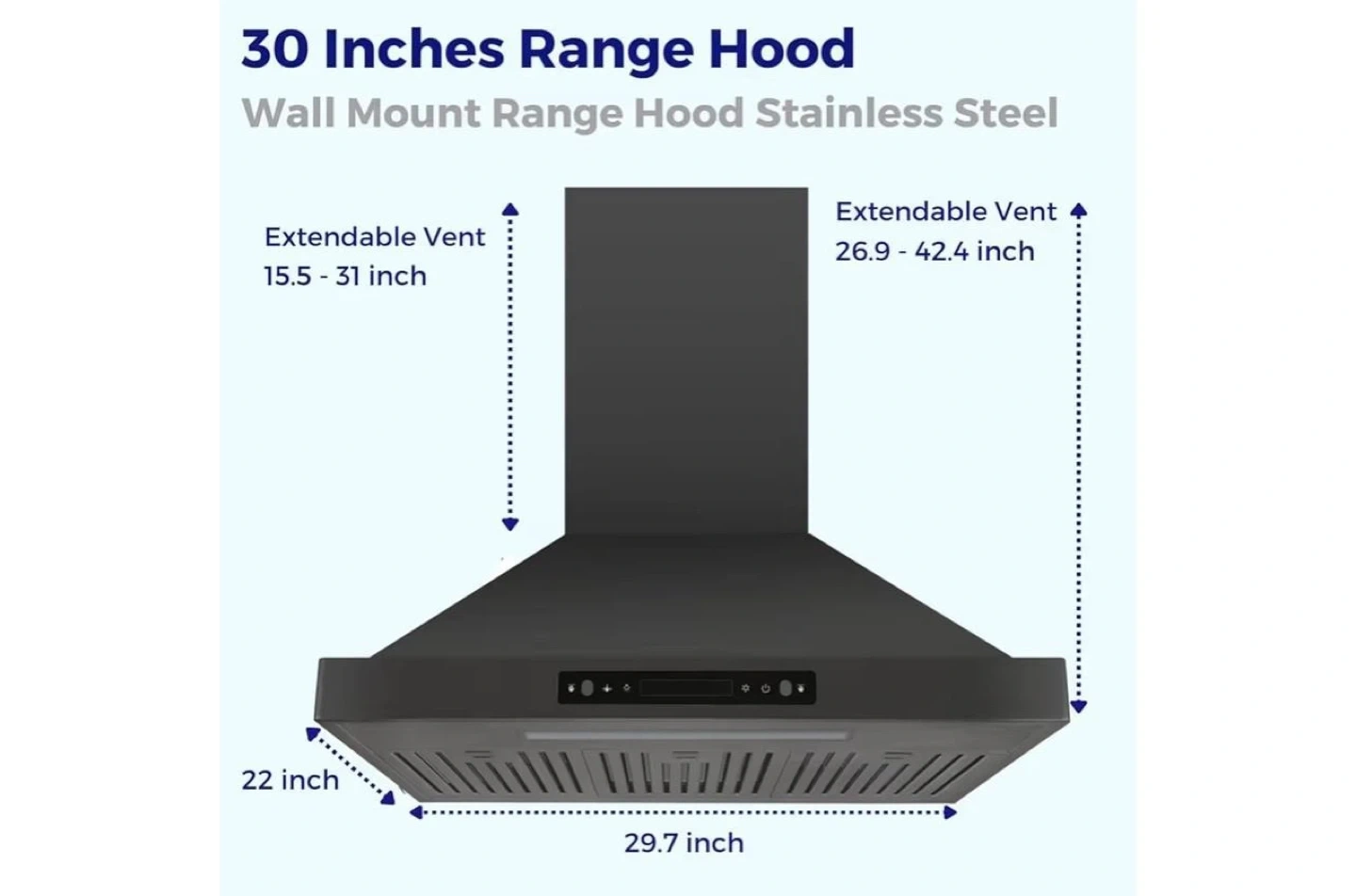 Item Name: Vesta Brussels 30" Wall‑Mount Range Hood – Metallic Black, 800 CFM, Remote Included