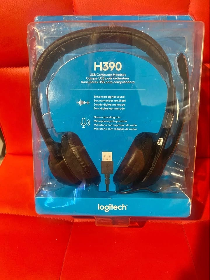 Experience clear audio for calls and more with this Logitech H390 USB computer headset, featuring enhanced digital sound and a noise-canceling microphone. This headset is nearly new, having been used only a few times and is in excellent condition.