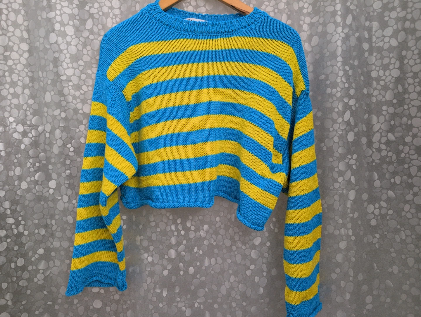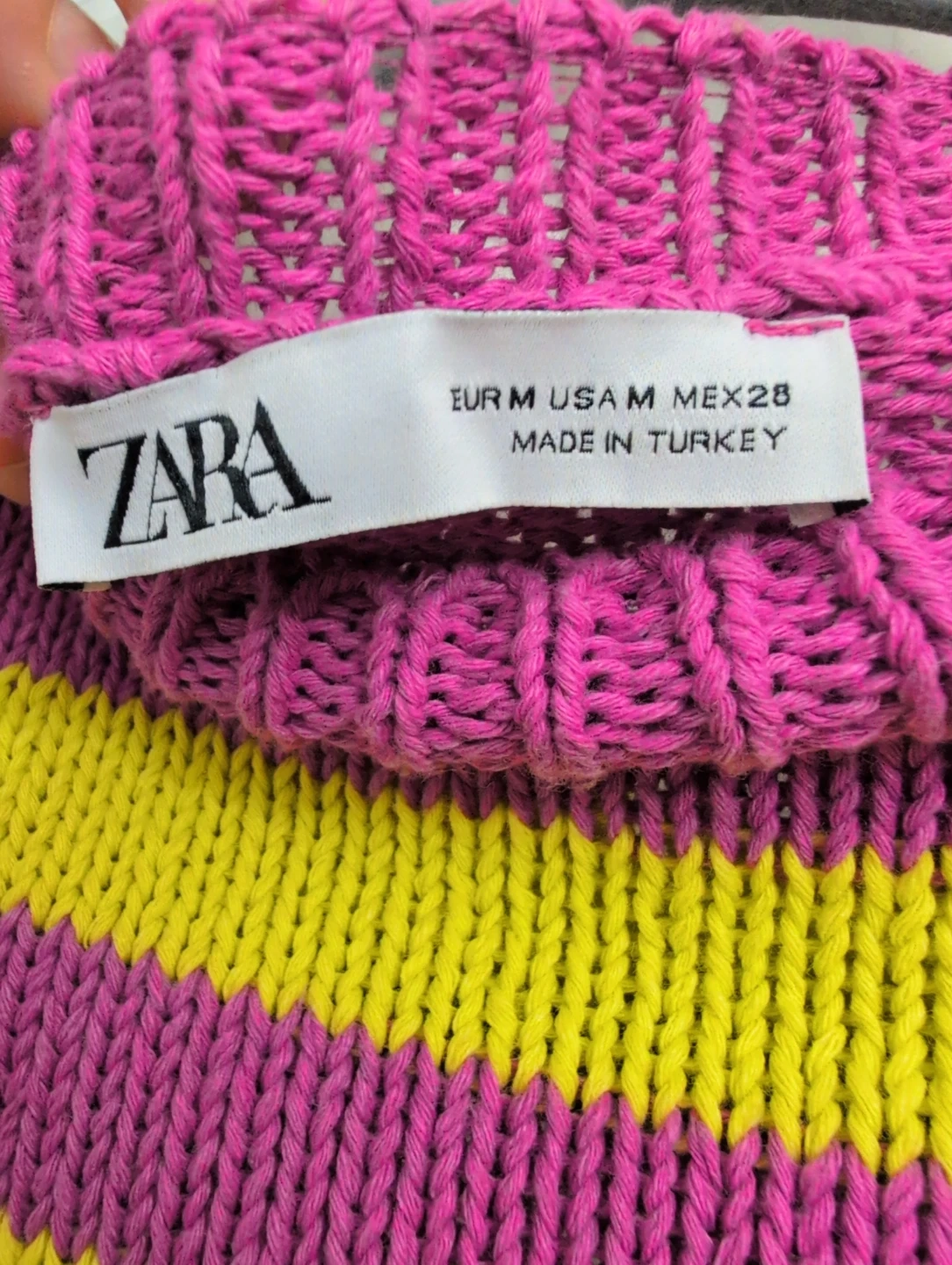 Selling a Zara striped knit crop sweater in size medium. It features a bright and fun colour combination.