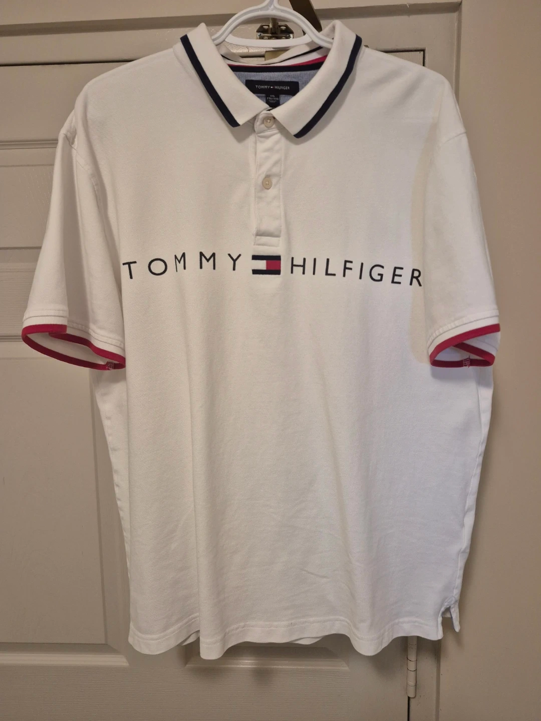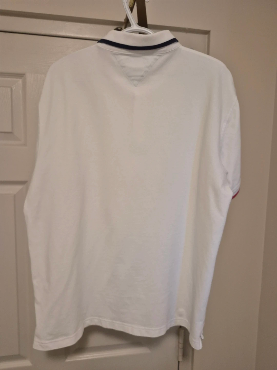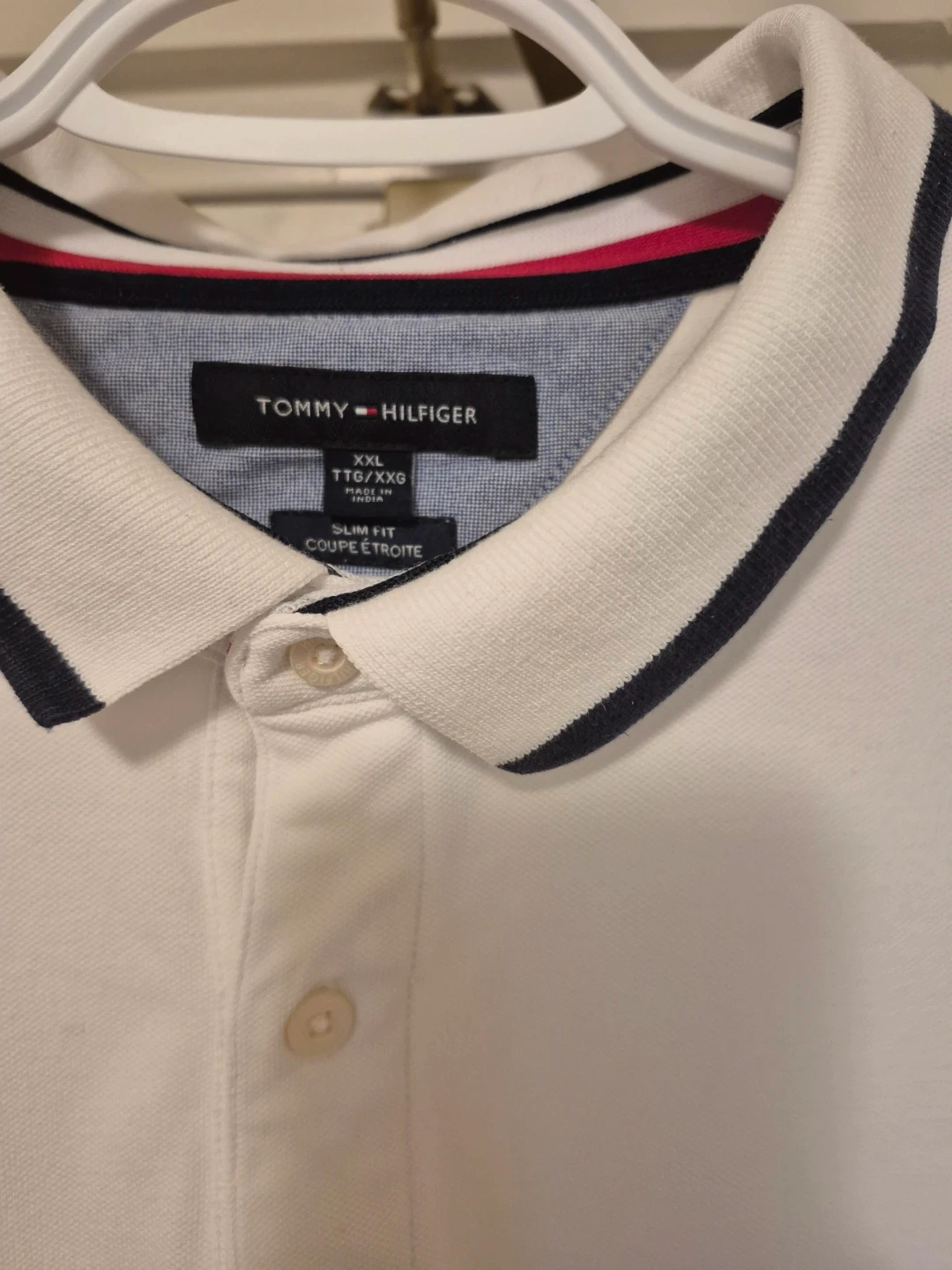 Tommy Hilfiger white polo shirt in size XXL. The shirt features a slim fit and is in great condition!