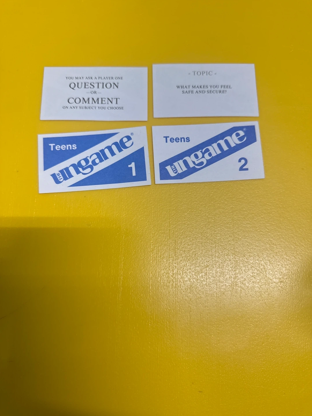 Selling The Ungame Teens Version! This is a self expression game. It's non-competitive and everyone wins, perfect for getting to know someone in a fun way!