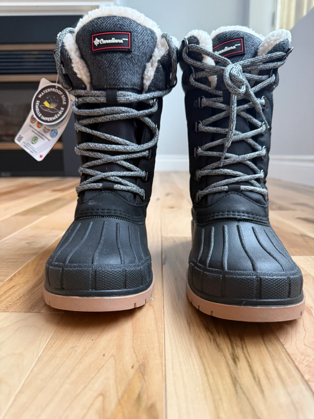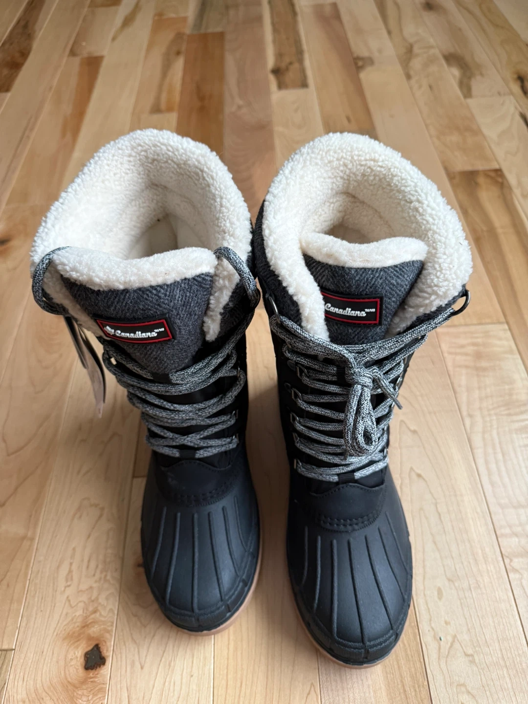 Cozy and warm winter boots from Canadiana! These boots are perfect for keeping your feet dry and comfortable during the cold months. They have a waterproof sole and a soft, plush lining to keep you toasty