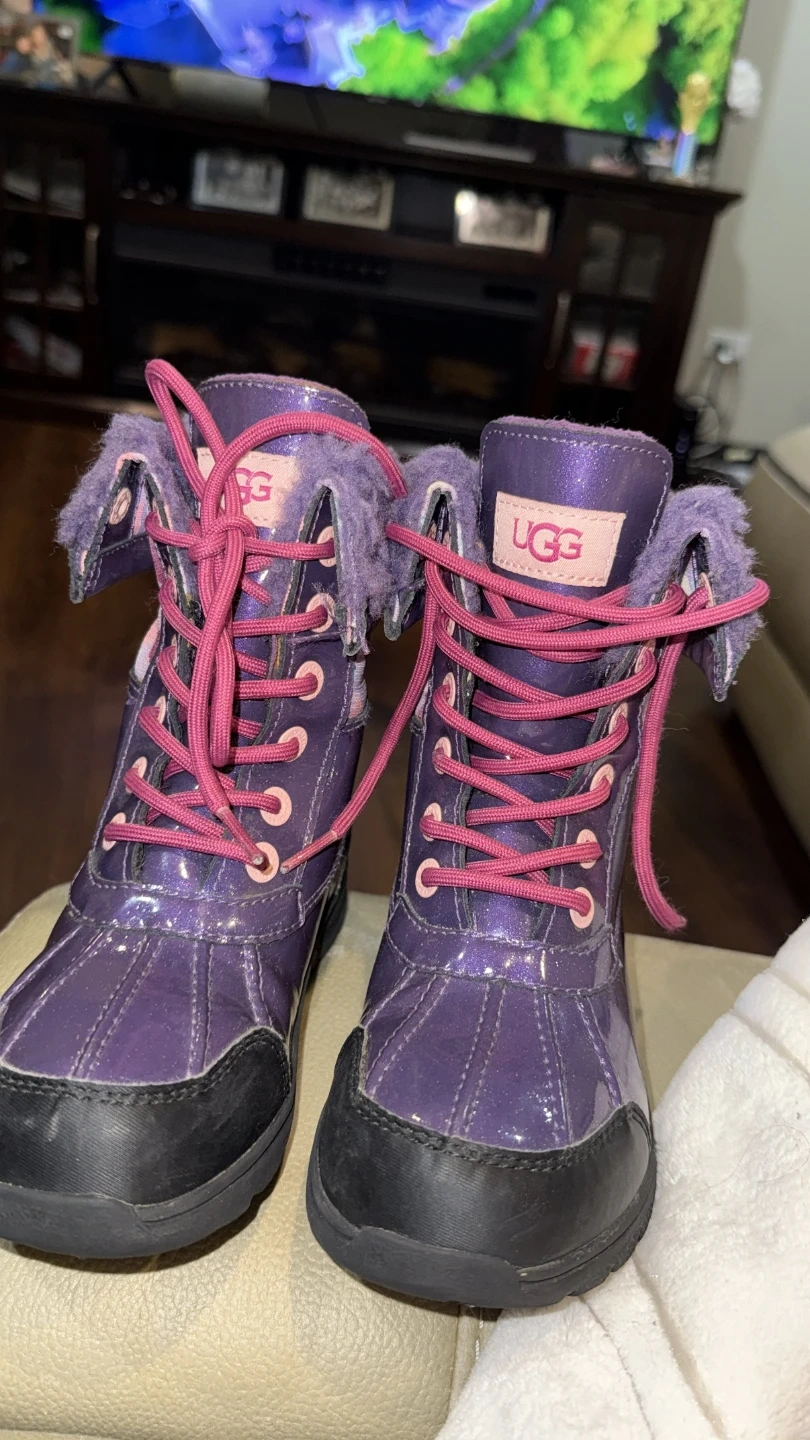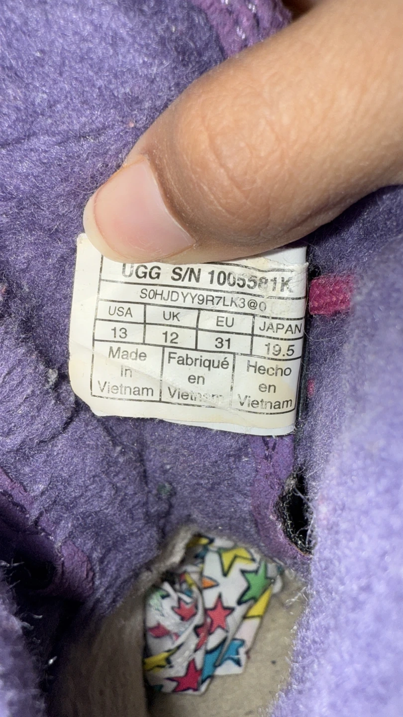 Selling a pair of UGG kids boots in purple! These are size 13 and have a cute design. They're perfect for keeping little feet warm and stylish.