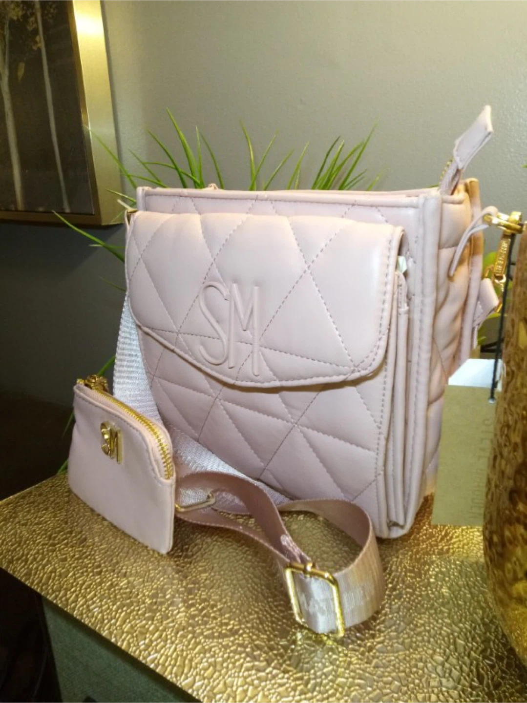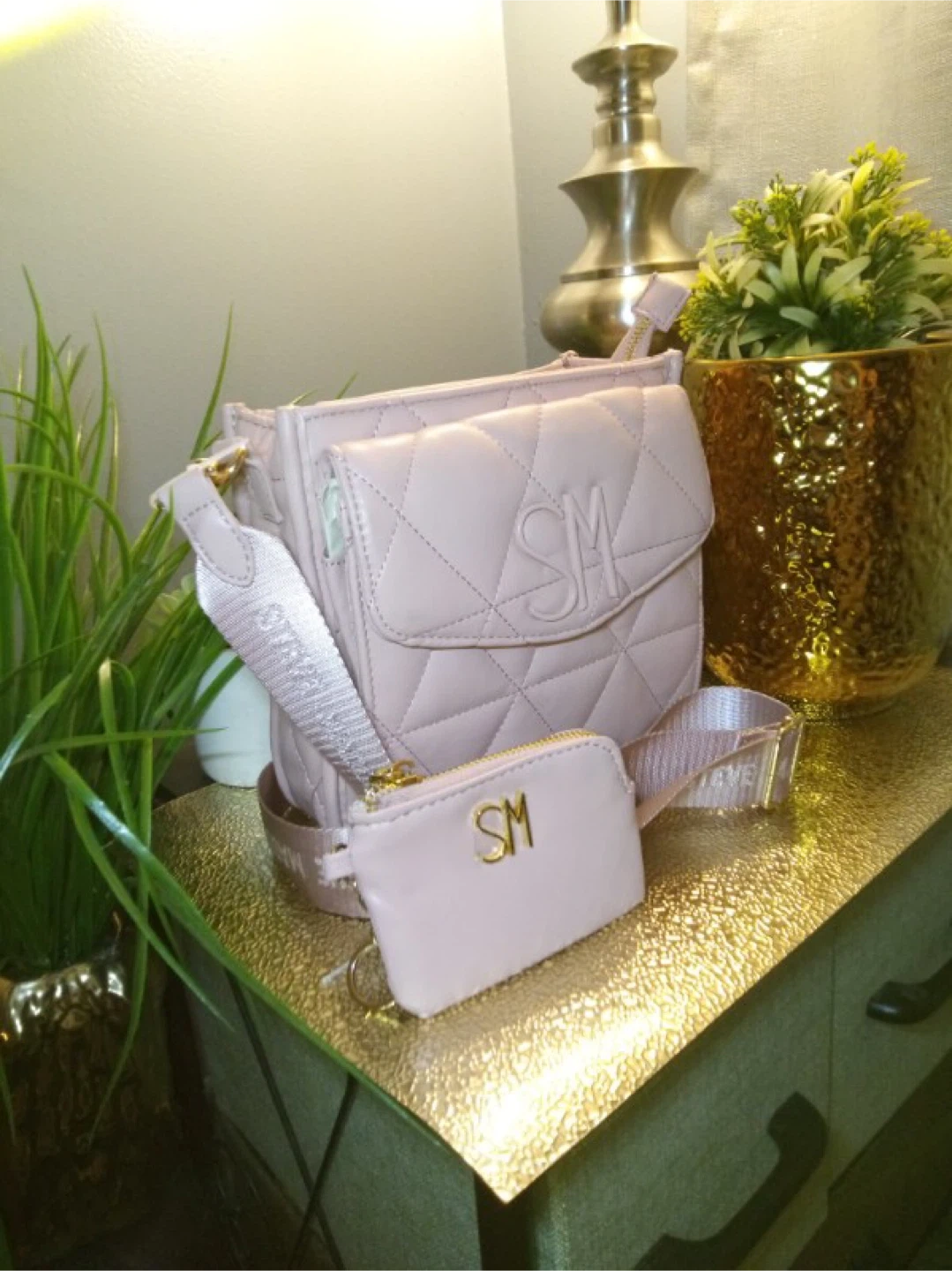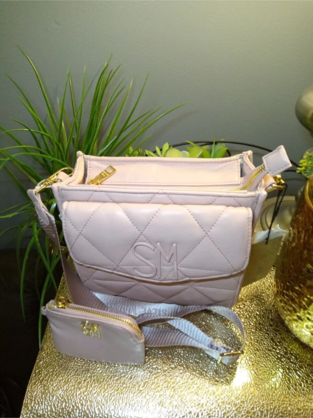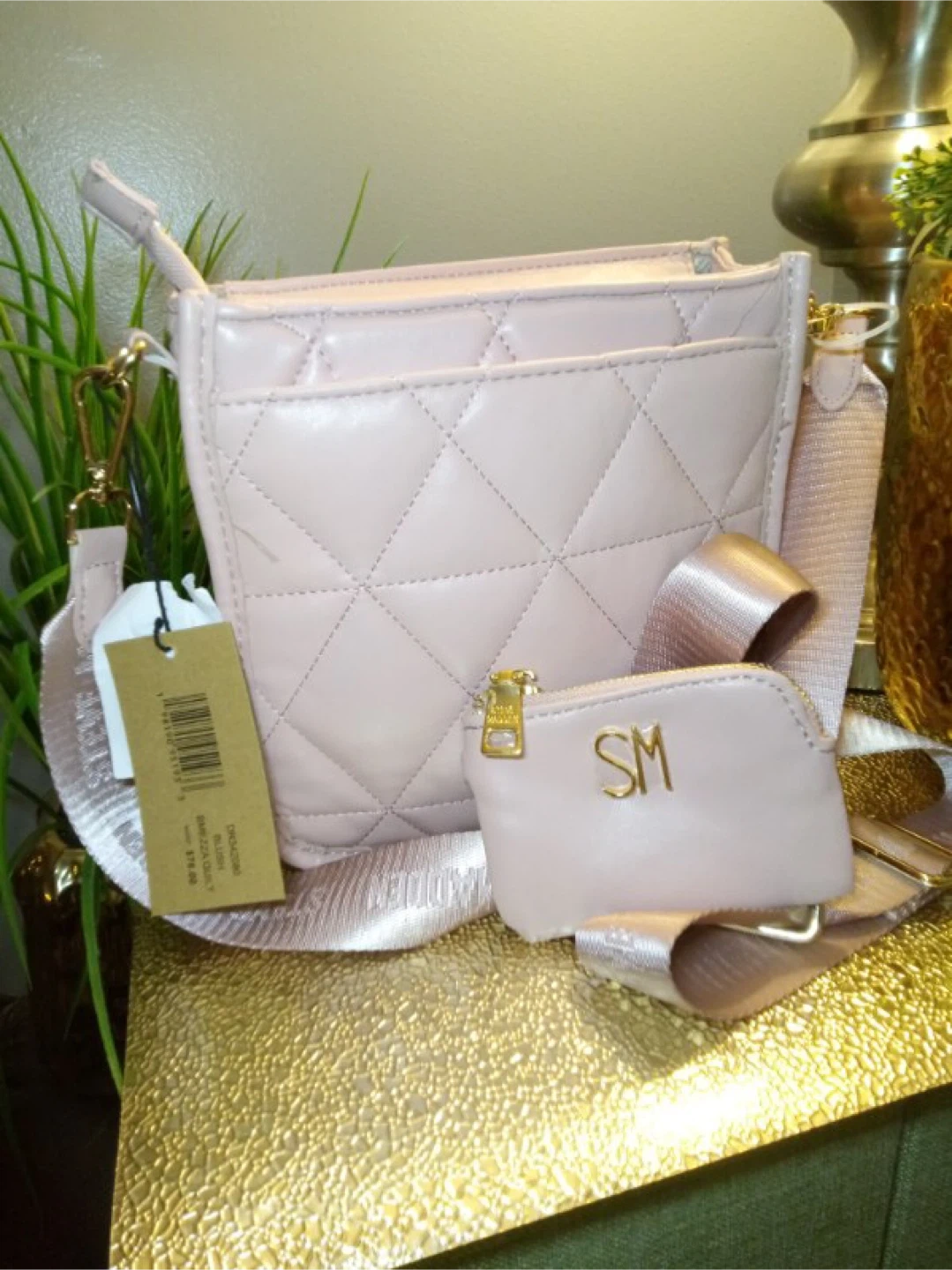 Selling a cute Steve Madden crossbody bag in a lovely pink color! It comes with a matching coin purse, perfect for keeping your essentials organized. The bag features a stylish quilted design with the Steve Madden logo. Great for everyday use or a night out!