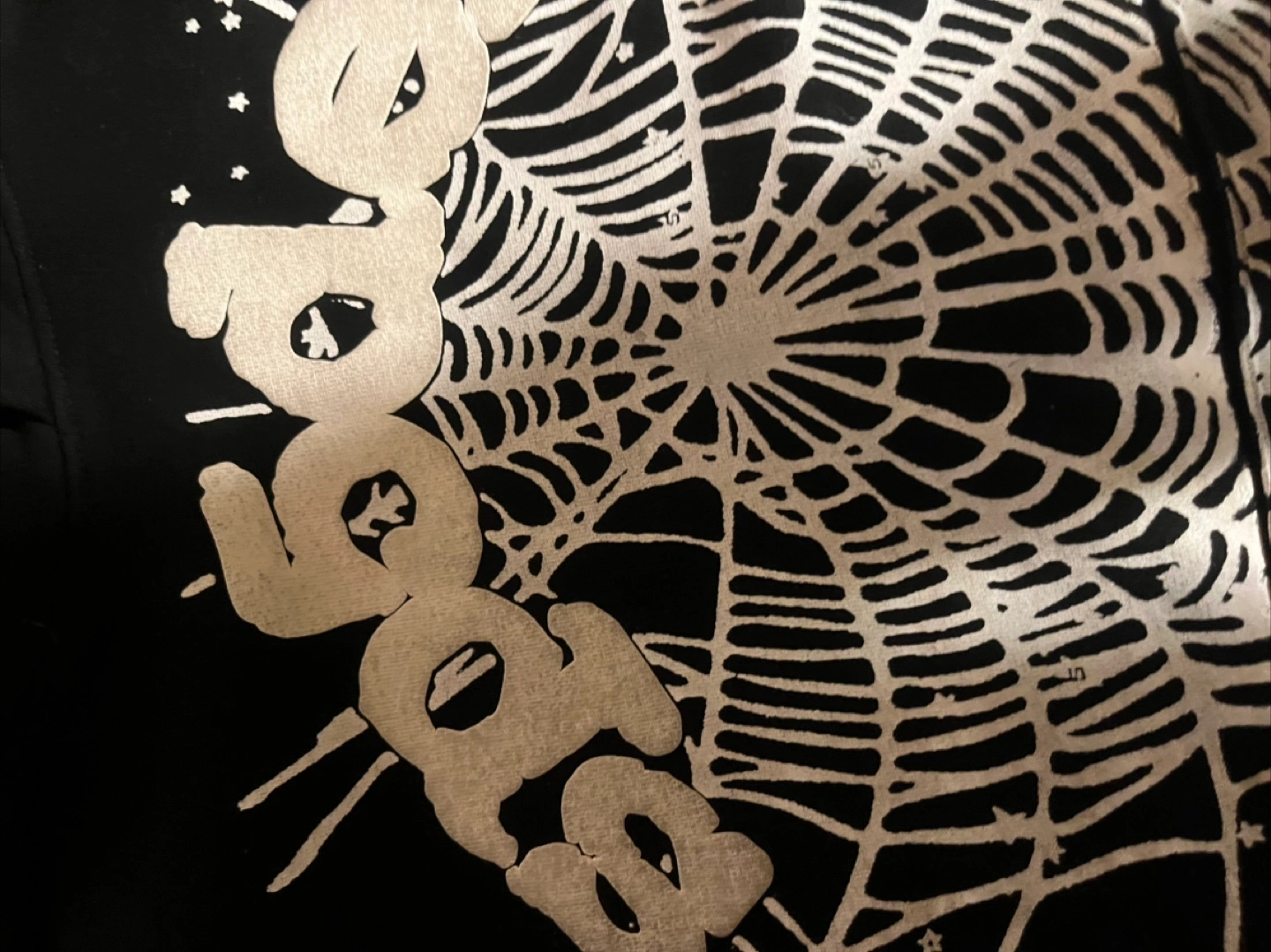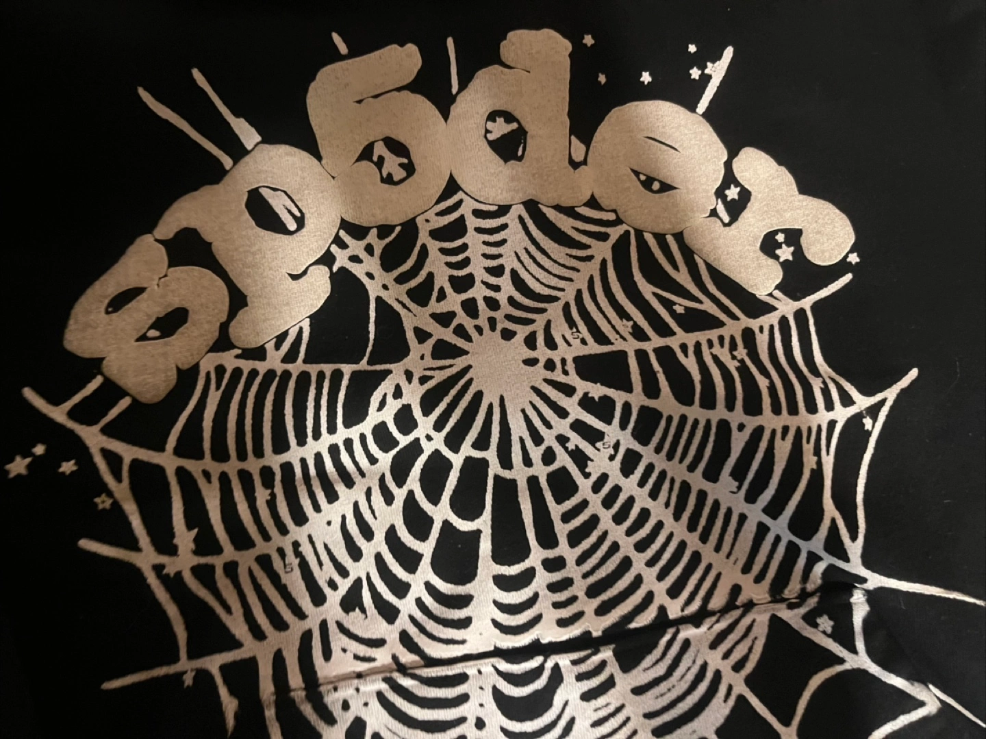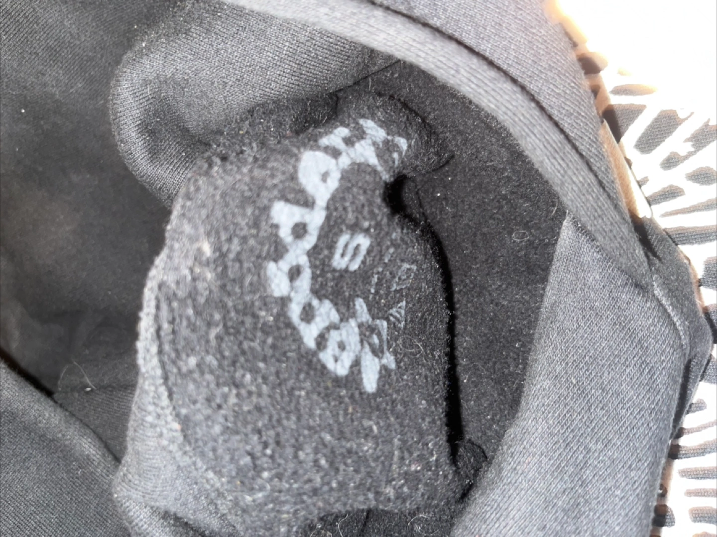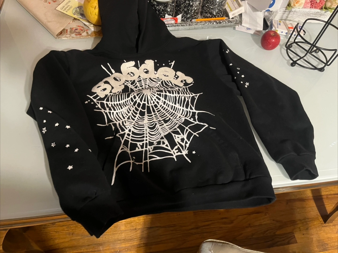 Selling a black spider hoodie in size S. The hoodie features a cool spiderweb design and star accents on the sleeves. It's in great condition and ready for a new owner!