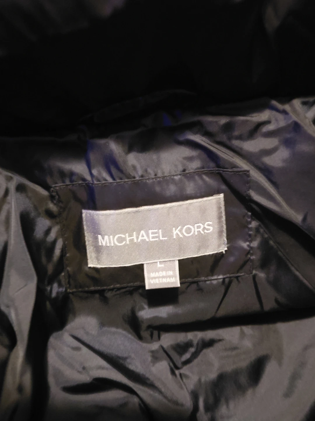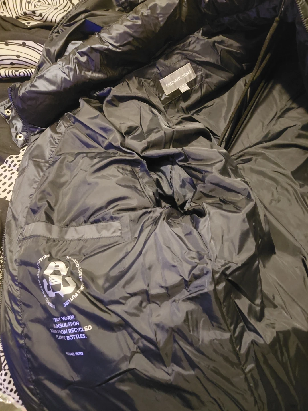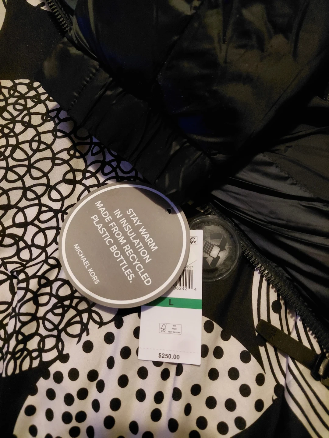 Selling a Michael Kors puffer jacket in size L! It's a stylish and warm jacket perfect for colder weather. The jacket is made with insulation from recycled plastic bottles, which is a great feature. Originally bought for $250!