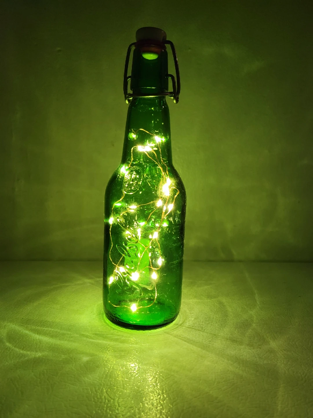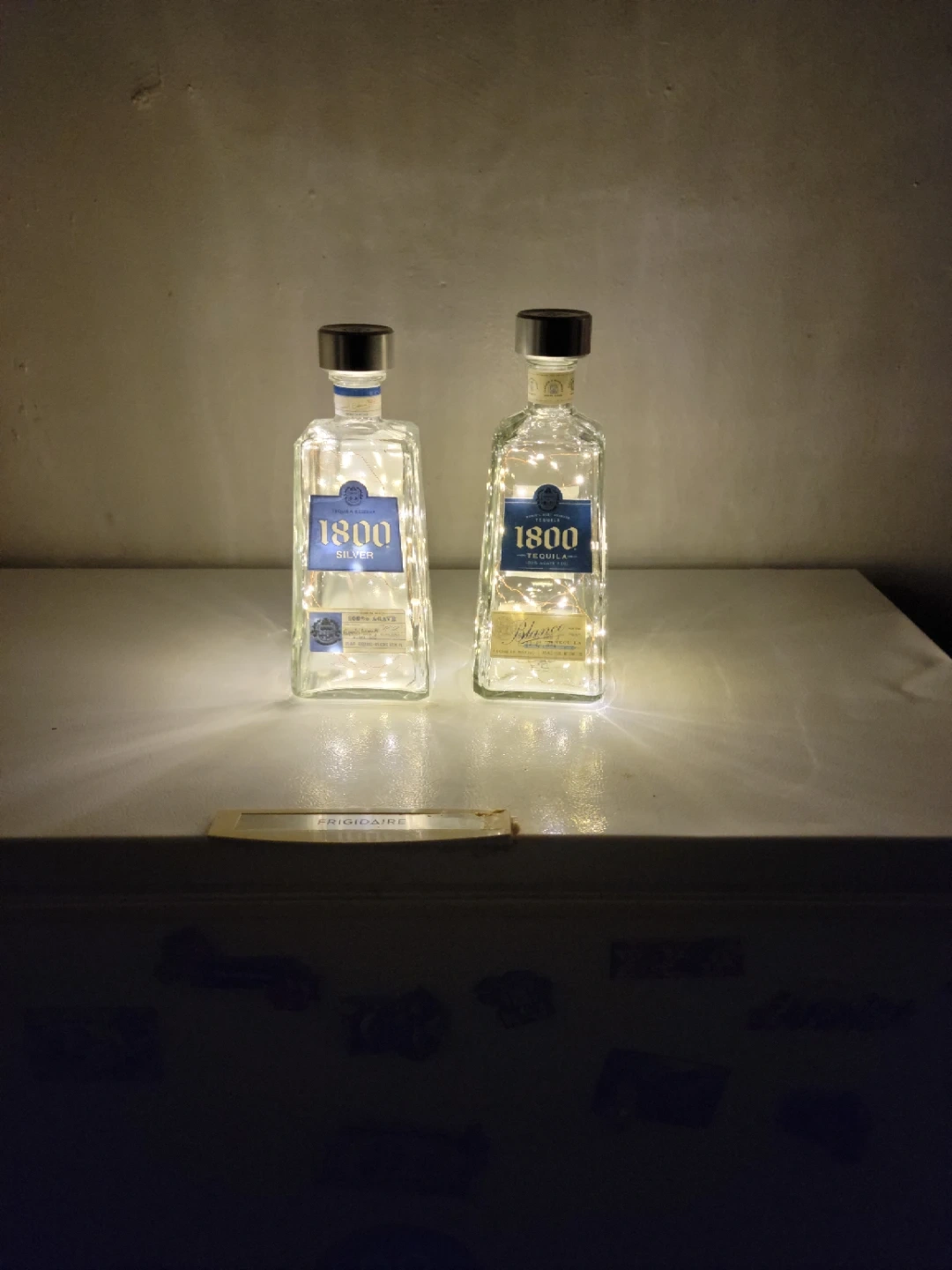 I'm selling these decorative tequila and beer bottles with string lights inside. They add a unique touch to any space! Perfect for a bar area, living room, or even as a party decoration. They create a warm and inviting ambiance