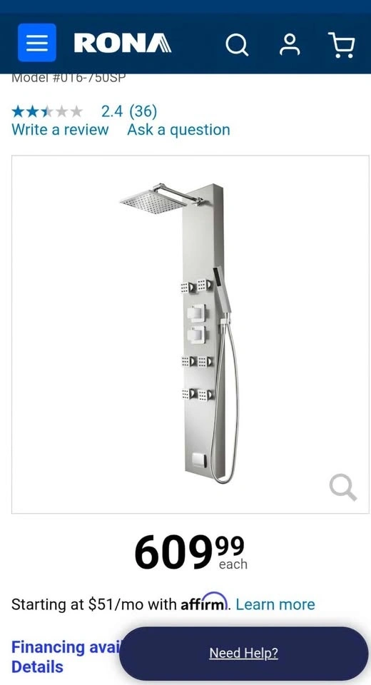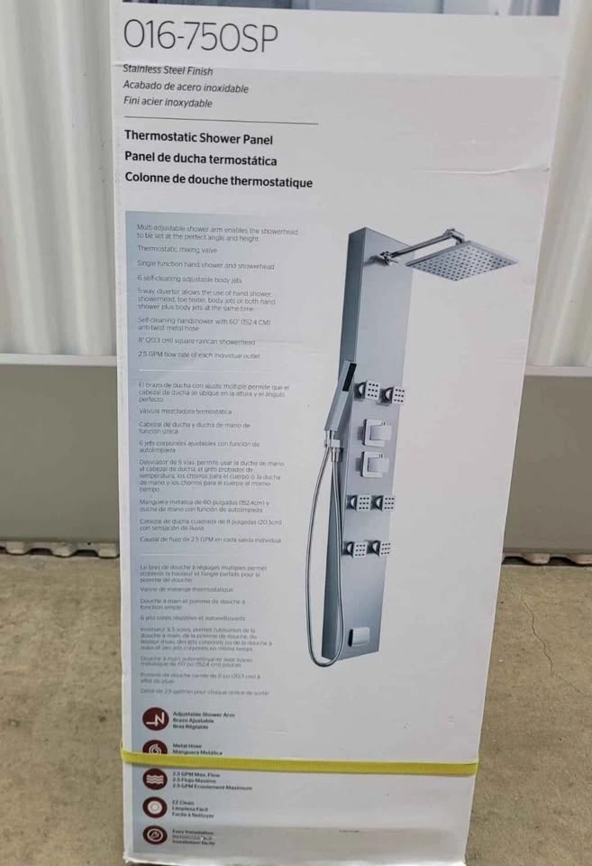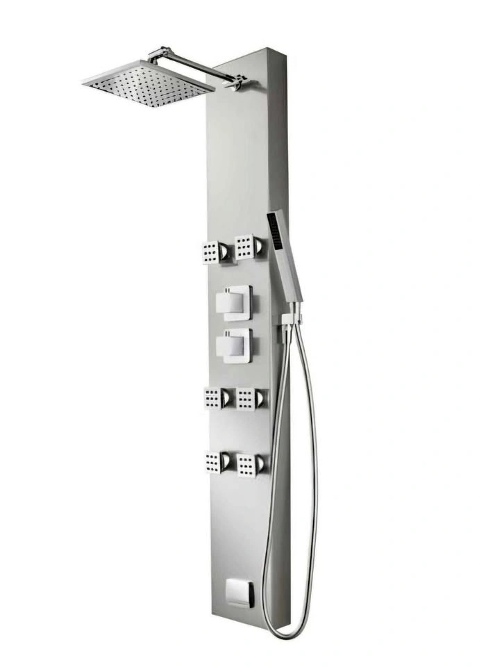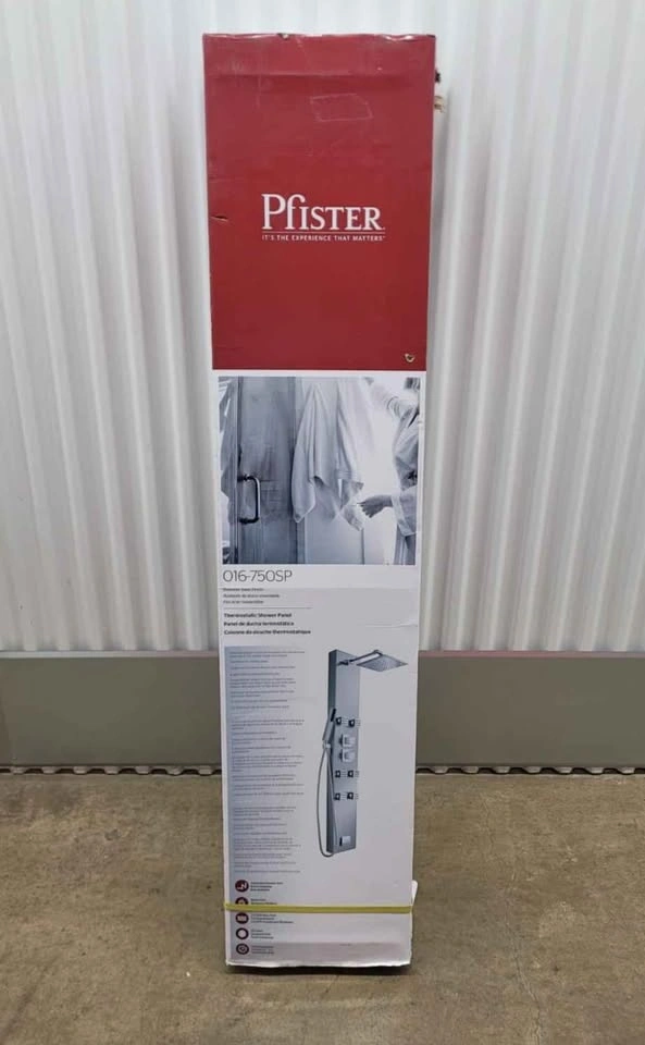 Pfister Polished Chrome Shower Panel, Rain Shower Head with Hand Shower, 5-Way Diverter and 6 Body Jets.