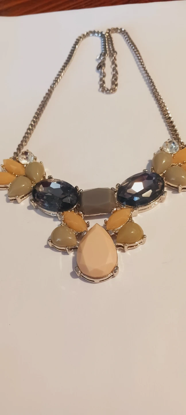 New !! This is a beautiful statement necklace with a variety of colors. It features gray, peach, and yellow stones in different shapes and sizes. It's perfect for adding a pop of color to any outfit! 18" long. New. ALL MY PRICES ARE NEGOTIABLE !!