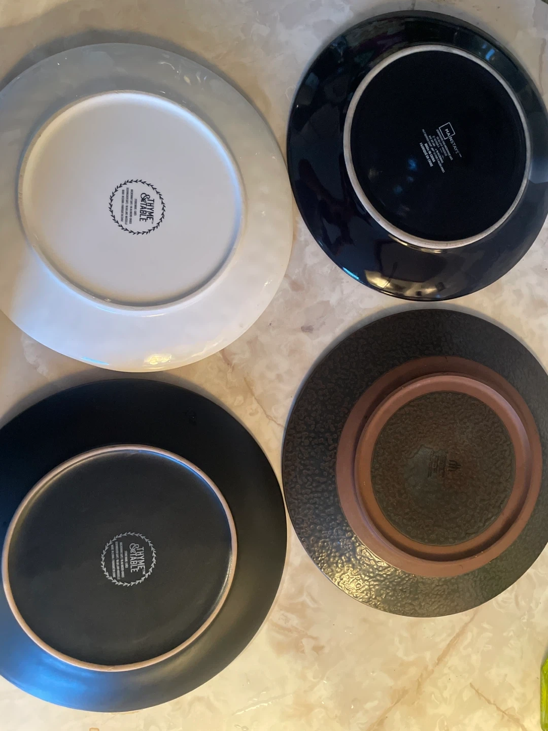 Selling a set of four (2 Thyme & Table + 2 Mainstays) Tabletops Gallery dinner plates.