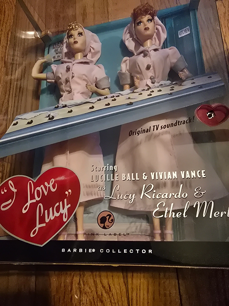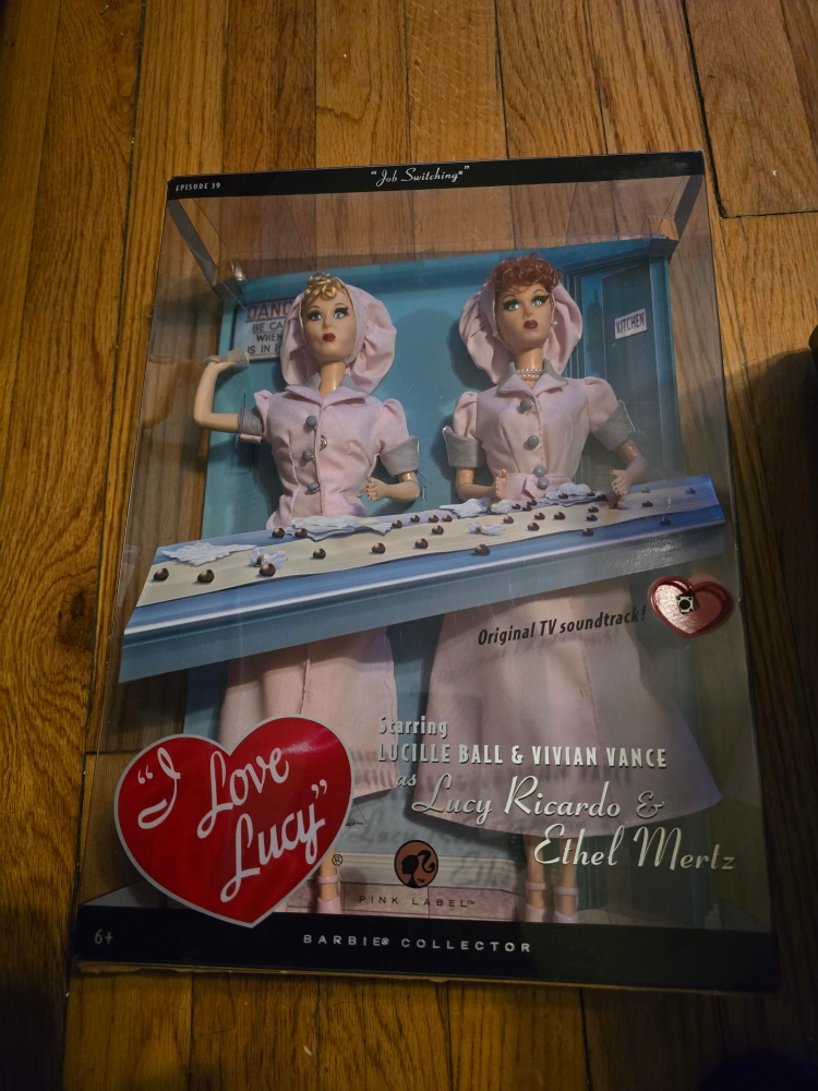 Selling a set of I Love Lucy Barbie Collector dolls, featuring Lucy Ricardo and Ethel Mertz in their "Job Switching" outfits from the iconic candy factory episode! These dolls are part of the Barbie Pink Label Collector series and come in their original box. Perfect for any Barbie collector or I Love Lucy fan!