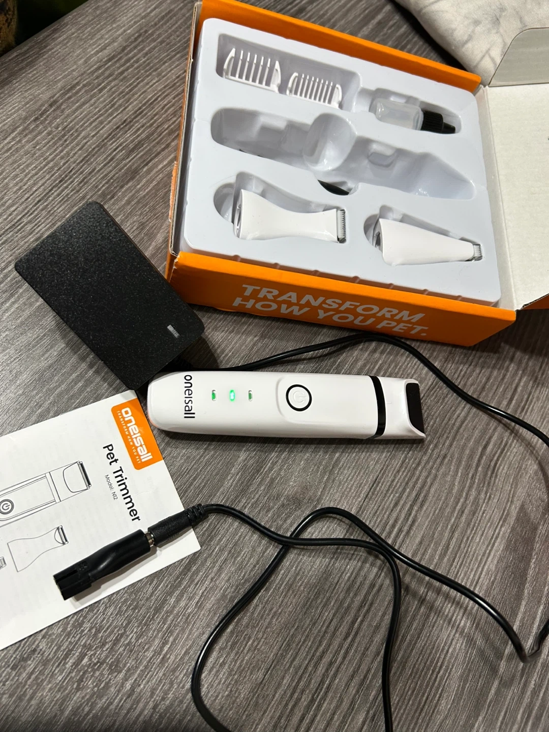I’m Selling a brand new oneisall Pet Trimmer, model N12! It's still in its original box and includes all the components. Perfect for keeping your furry friend looking their best! Charging cable included in this kit!